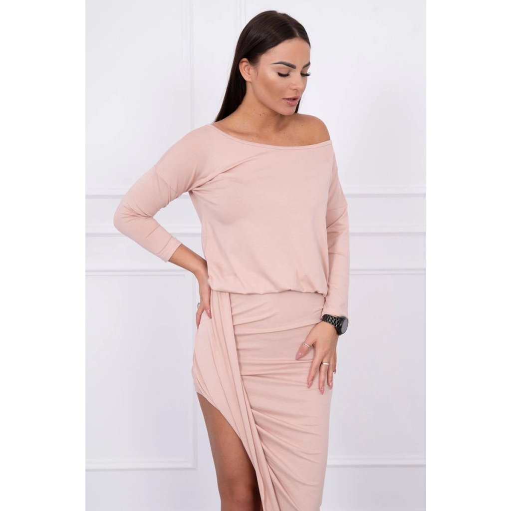 Predstavujeme vám štýlové asymetrické šaty s 3/4 rukávom. Šaty sú vyrobené z vysokokvalitného materiálu. Veľkosť je univerzálna a bude vhodná pre dámy nosiace veľkosť S, M alebo L.