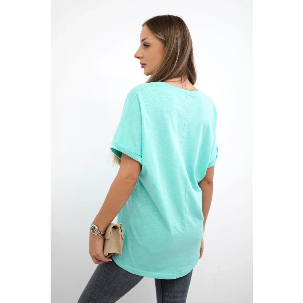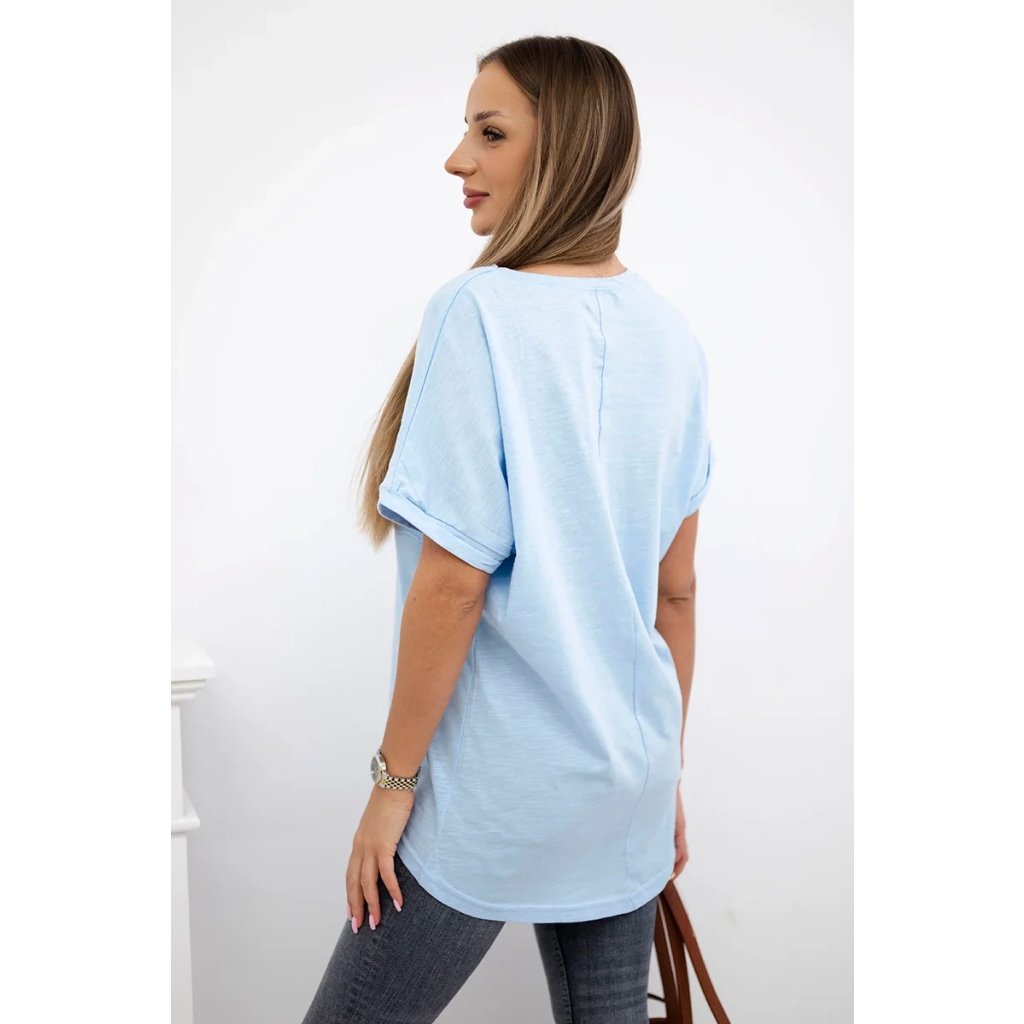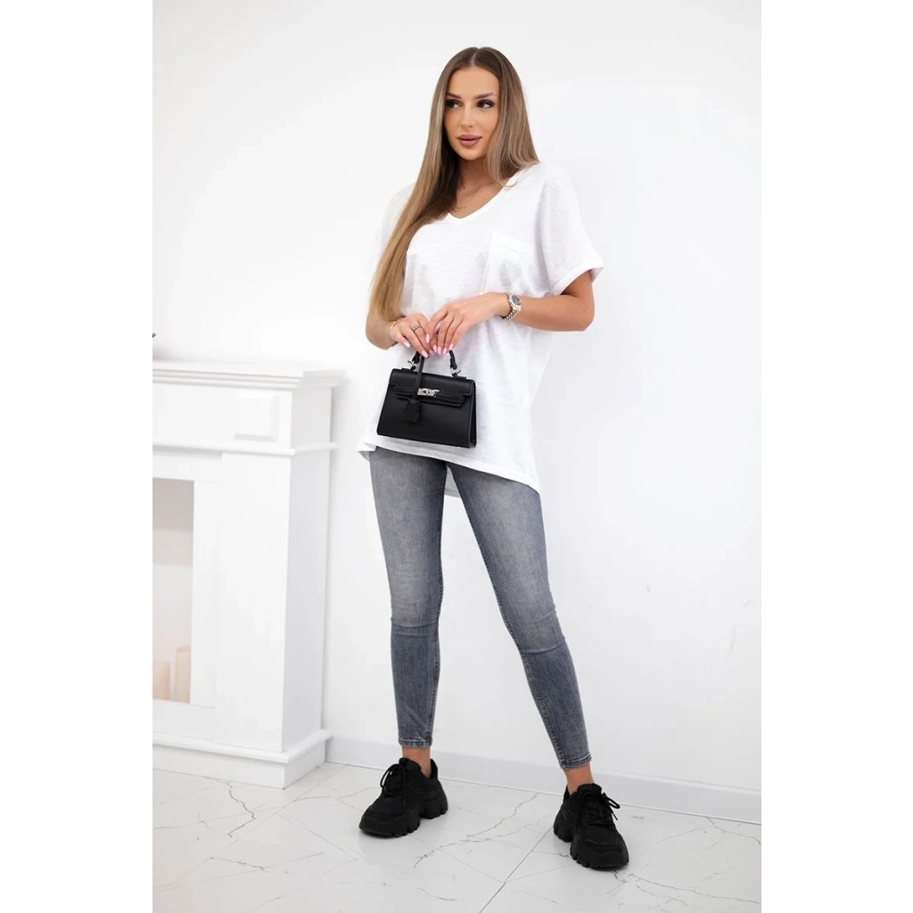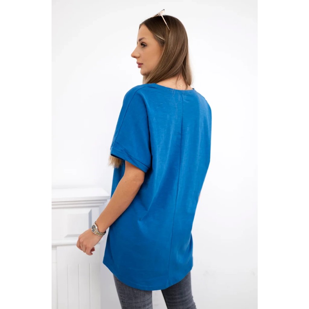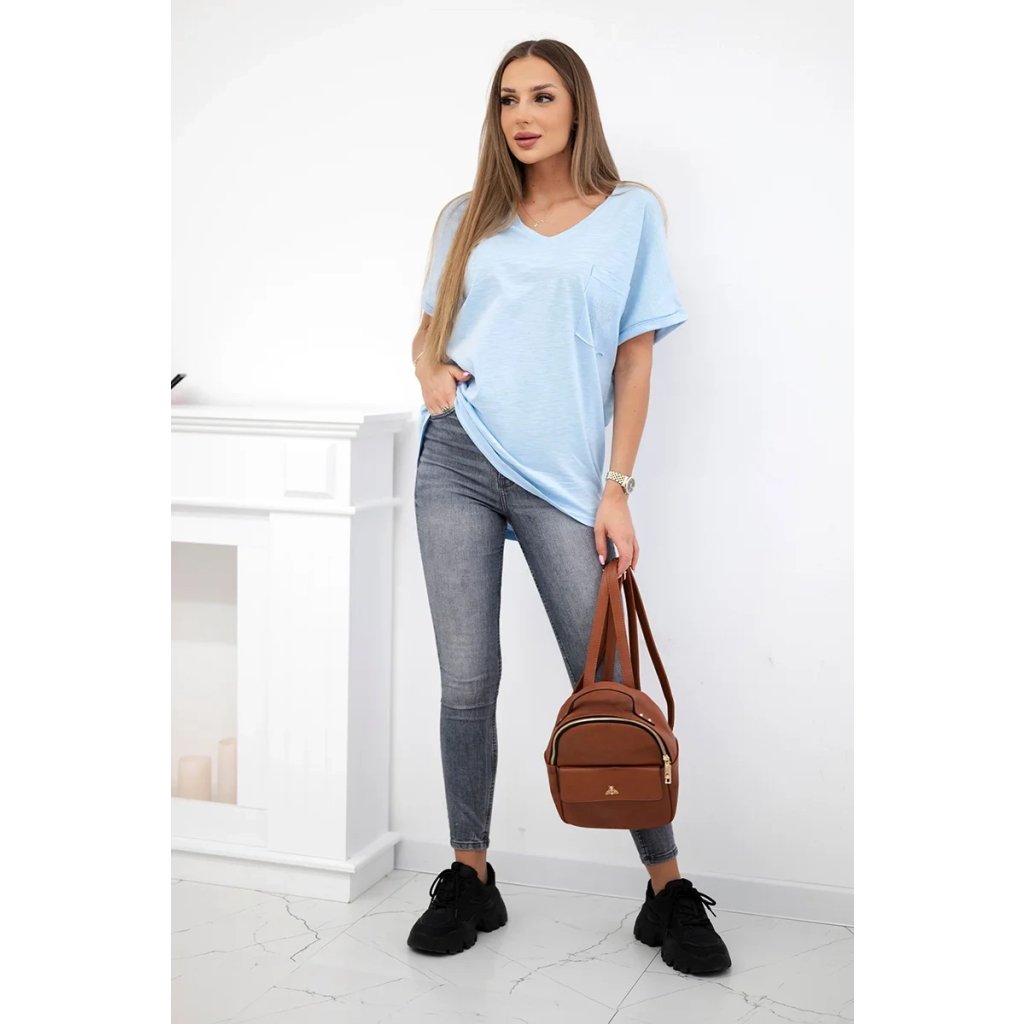 Bavlnená blúzka s výstrihom do V a vreckom je ideálna voľba na letné dni. Vyrobená z bavlny zaručuje pohodlie pri nosení. Výstrih v tvare písmena V dodáva štýlu ženský výraz a vrecko umiestnené na prsiach pridáva blúzke trochu ležérneho charakteru. Takáto blúzka sa perfektne hodí ako na každodenné, tak aj na formálnejšie outfity, čím predstavuje mimoriadne univerzálny prvok šatníka. Veľkosť je univerzálna a bude vhodná pre dámy nosiace veľkosť S, M alebo L.