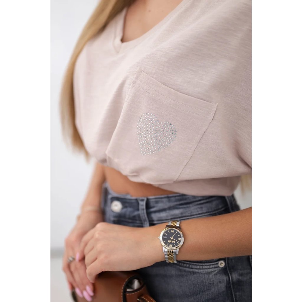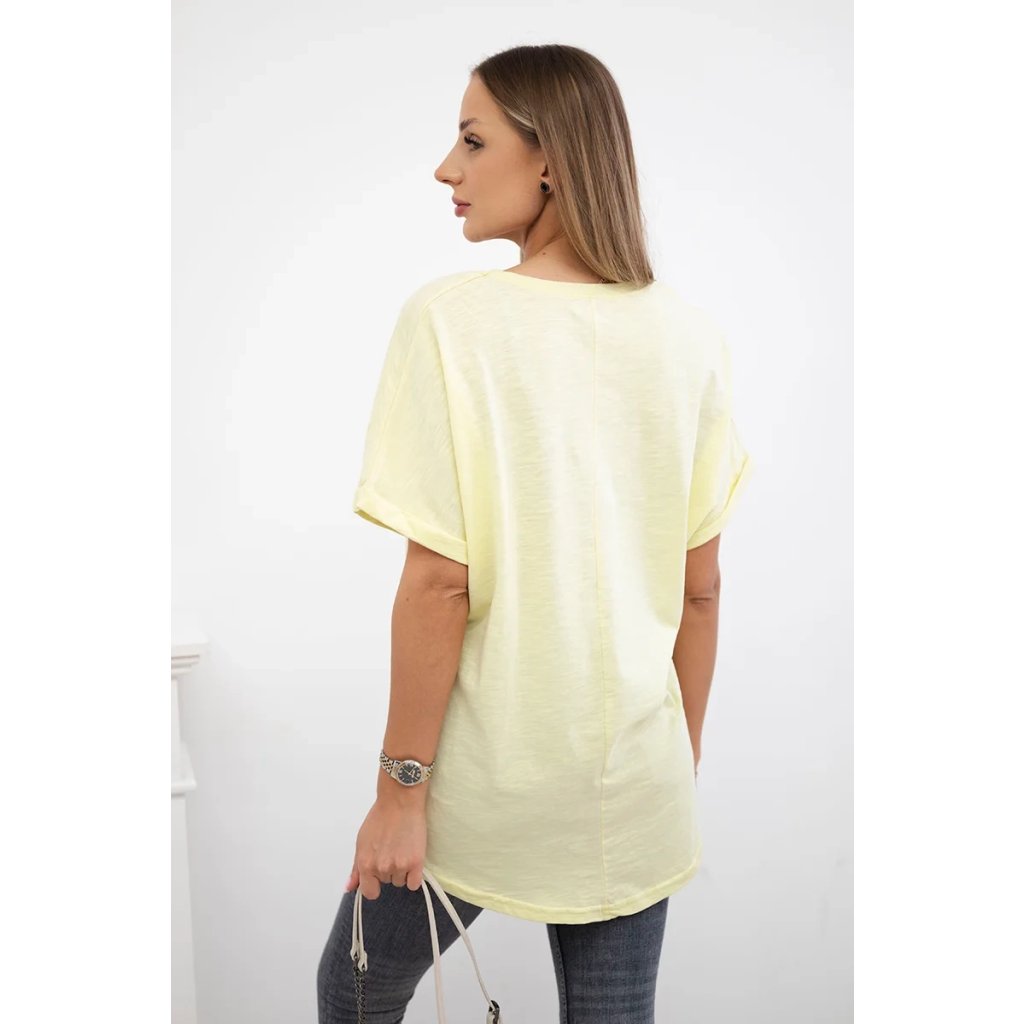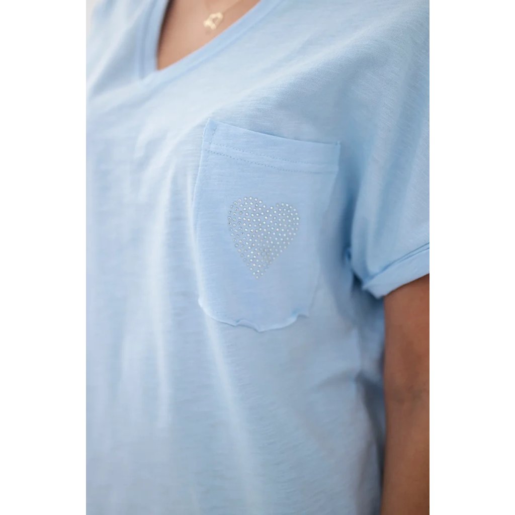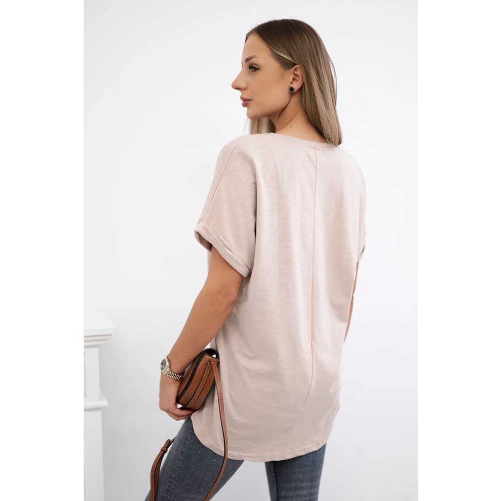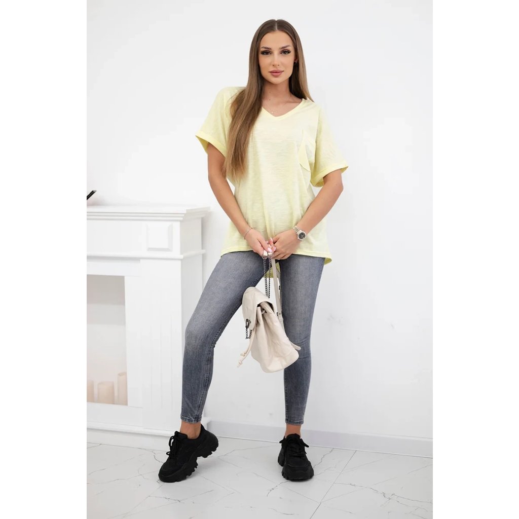 Bavlnená blúzka s výstrihom do V a vreckom je ideálna voľba na letné dni. Vyrobená z bavlny zaručuje pohodlie pri nosení. Výstrih v tvare písmena V dodáva štýlu ženský výraz a vrecko umiestnené na prsiach pridáva blúzke trochu ležérneho charakteru. Takáto blúzka sa perfektne hodí ako na každodenné, tak aj na formálnejšie outfity, čím predstavuje mimoriadne univerzálny prvok šatníka. Veľkosť je univerzálna a bude vhodná pre dámy nosiace veľkosť S, M alebo L.