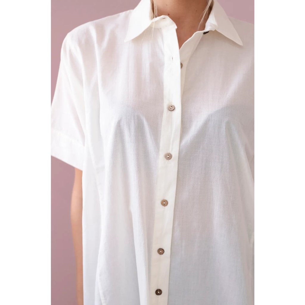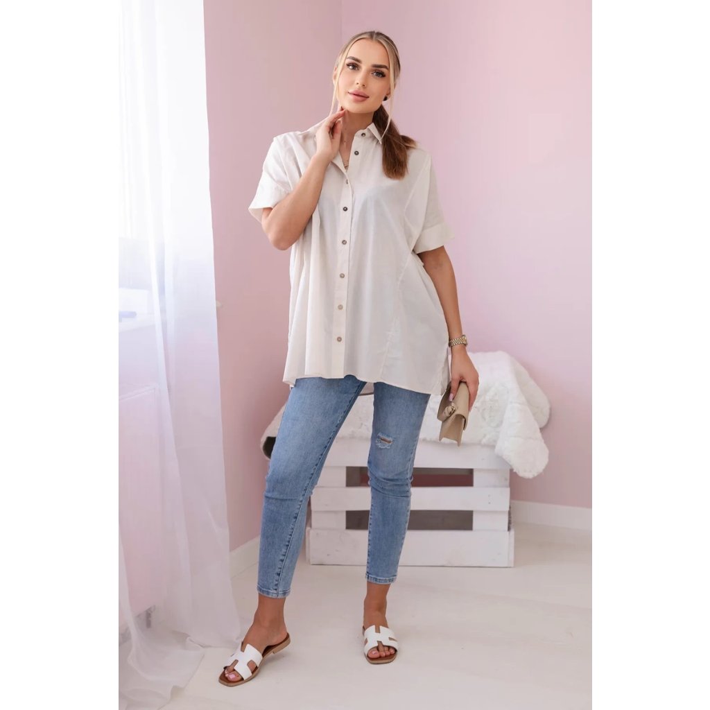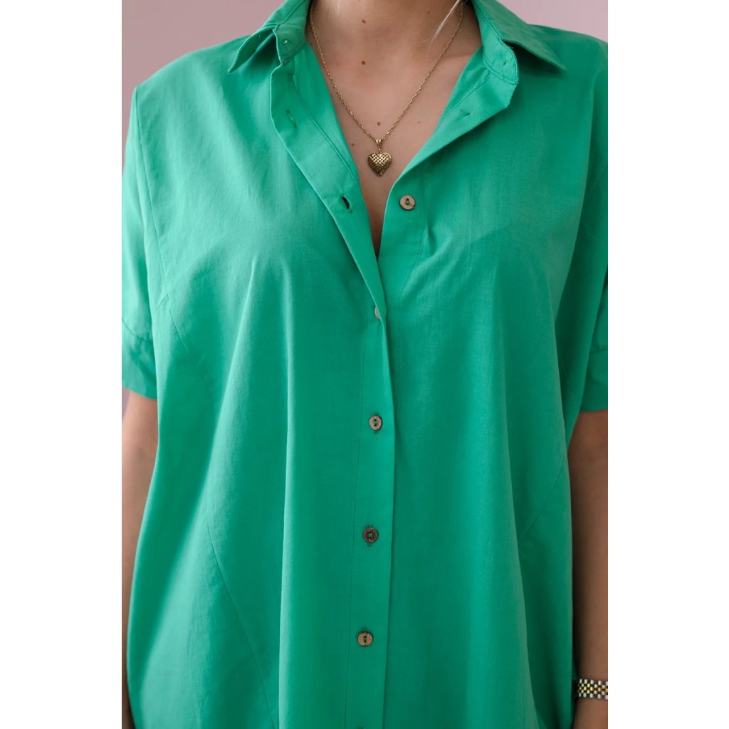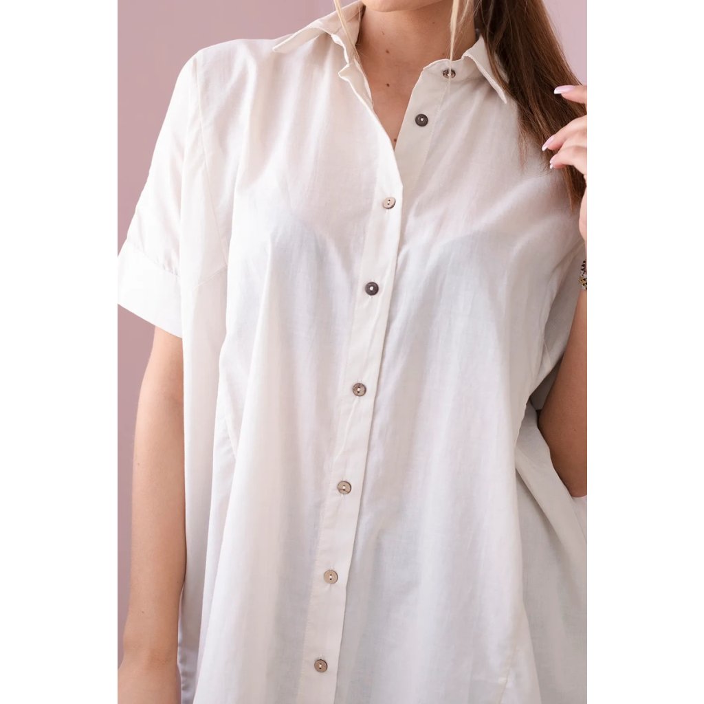 Bavlnená košeľa s krátkym rukávom je vynikajúca voľba na teplé dni, spájajúca eleganciu s pohodlím. Vyrobená z vysokokvalitnej bavlny, košeľa poskytuje nielen príjemný pocit na pokožke, ale aj dobrú ventiláciu a voľnosť pohybu. Krátky rukáv dodáva košeli ľahkosť a dodáva jej neformálny charakter, čo ju robí ideálnou ako do práce, tak aj na neformálne stretnutia či vychádzky. Univerzálny strih spôsobuje, že bavlnená košeľa s krátkym rukávom sa stáva nenahraditeľným prvkom v šatníku každej ženy, ktorá si cení štýl a pohodlie. Veľkosť je univerzálna a bude vhodná pre dámy nosiace veľkosť S, M alebo L.