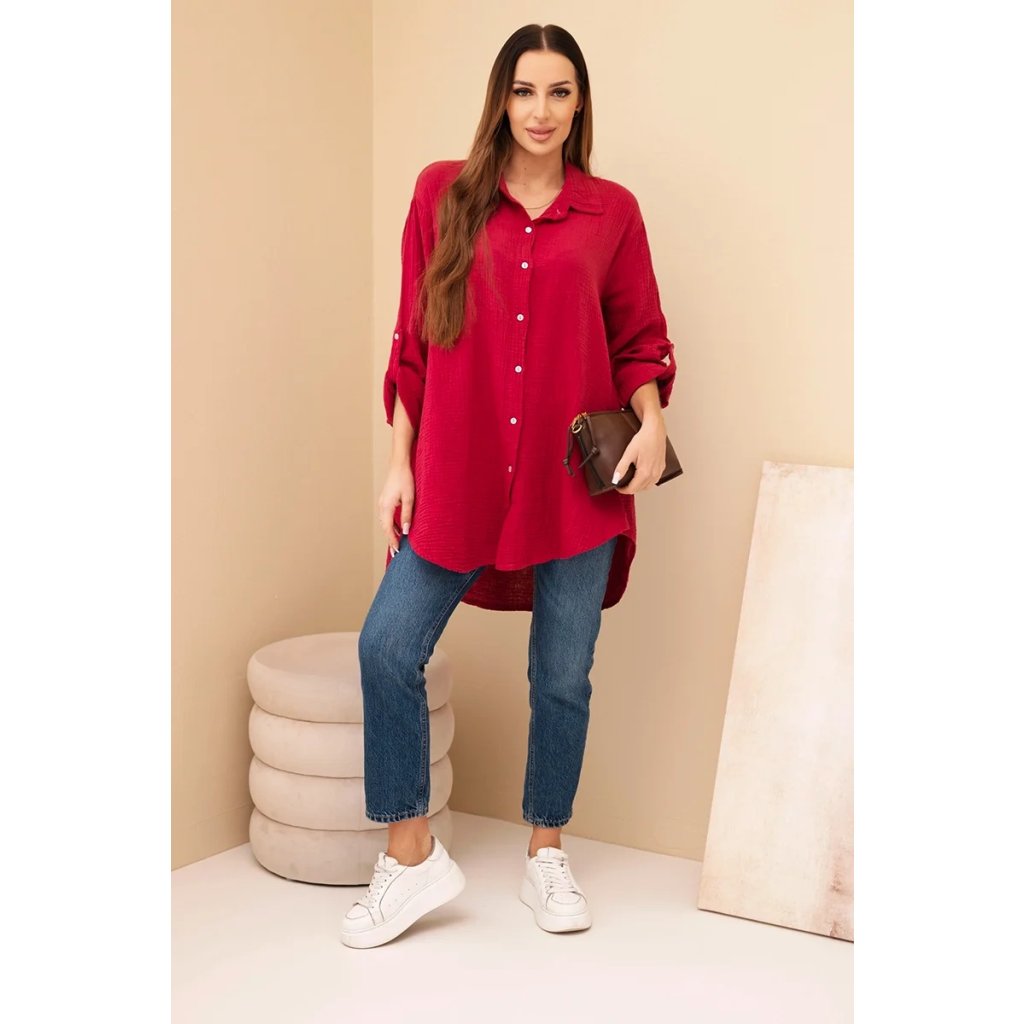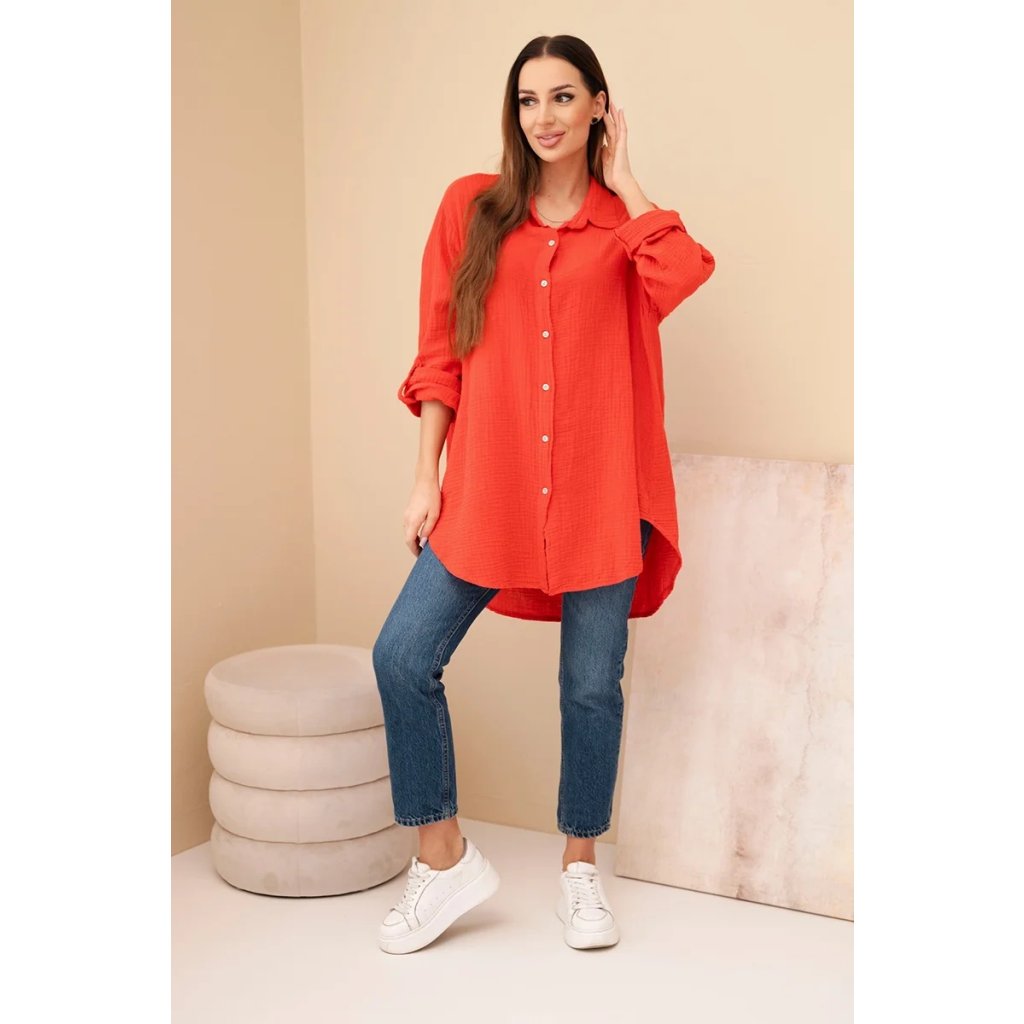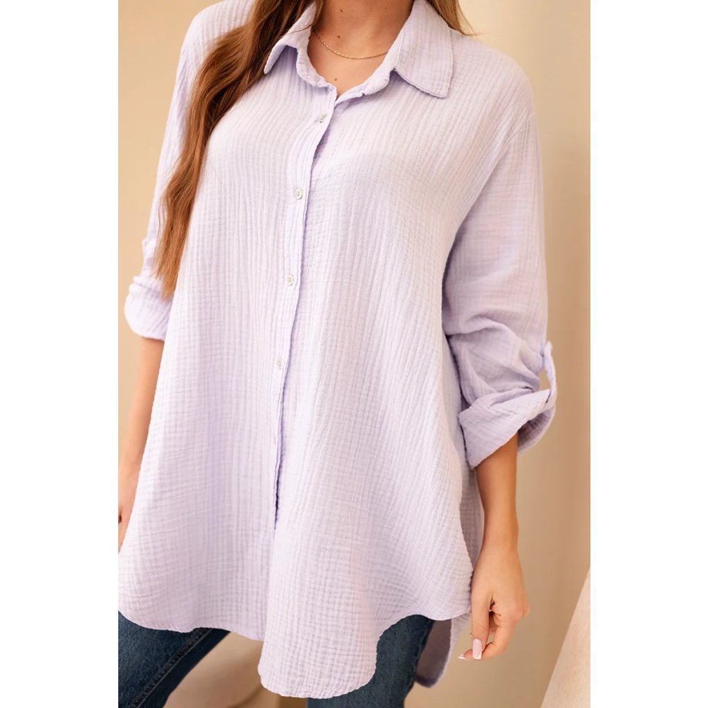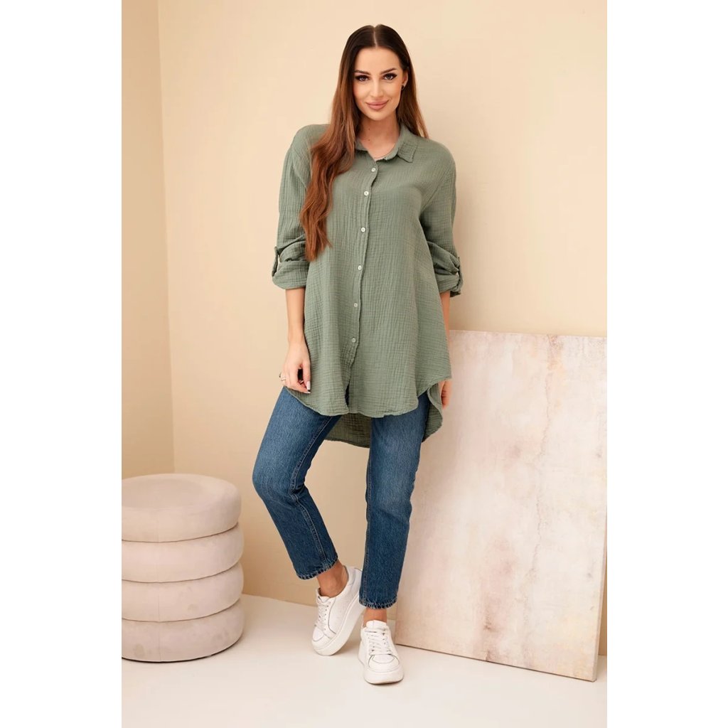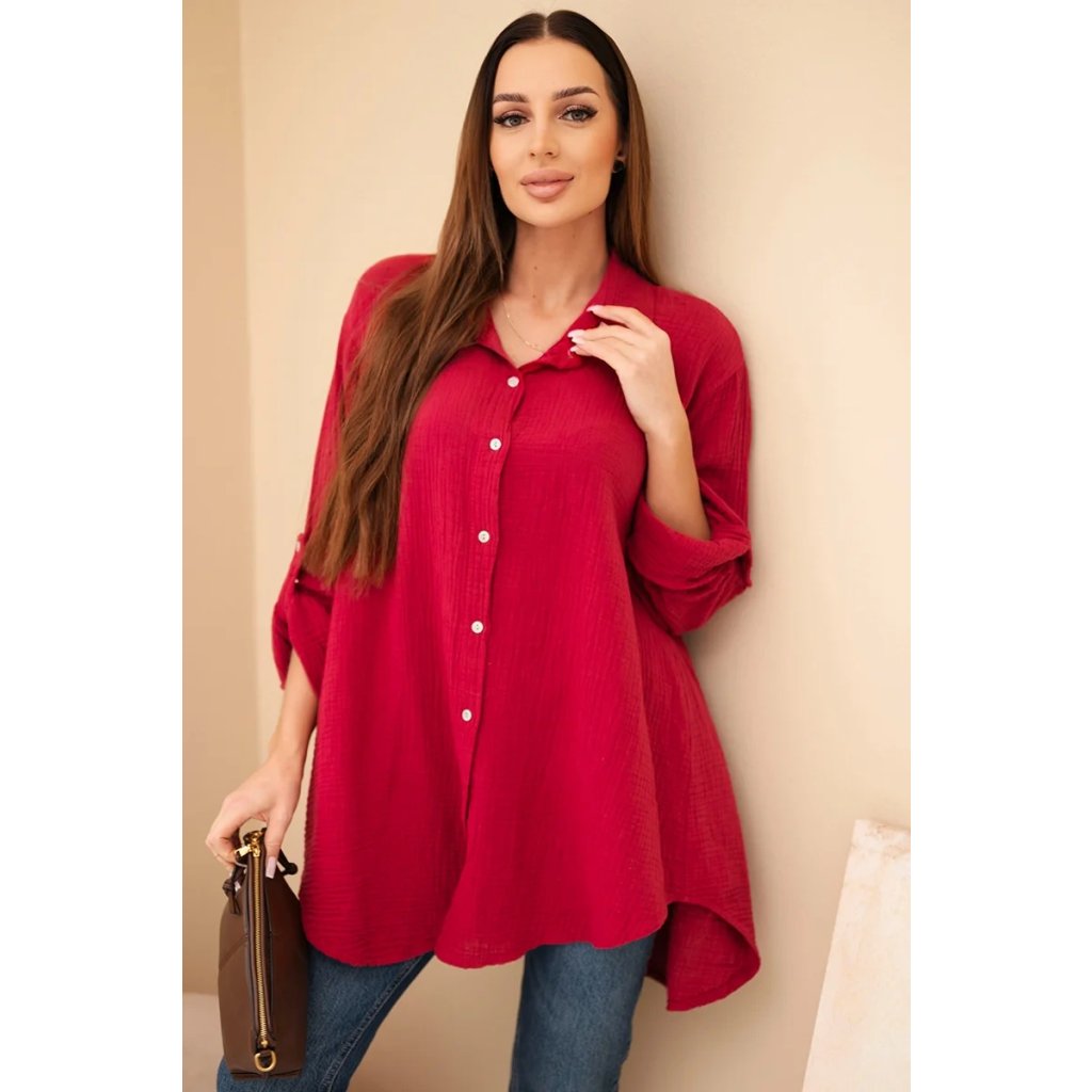 Mušelínová košeľa je esencia pohodlia a nadčasovej elegancie. Vyrobená z ľahkého, priedušného mušelínu, je ideálna na každé ročné obdobie, poskytujúc pohodlie nosenia a voľnosť pohybu. Jej univerzálny strih spôsobuje, že sa skvelo uplatní ako v ležérnych štýloch, tak aj vo formálnejších kombináciách. Jemná štruktúra materiálu dodáva subtílny šarm a starostlivé dokončenie zvýrazňuje vysokú kvalitu spracovania. Mušelínová košeľa je nevyhnutným prvkom šatníka pre osoby, ktoré oceňujú spojenie klasiky s moderným štýlom. Veľkosť je univerzálna a bude vhodná pre ženy s veľkosťou S, M alebo L.
