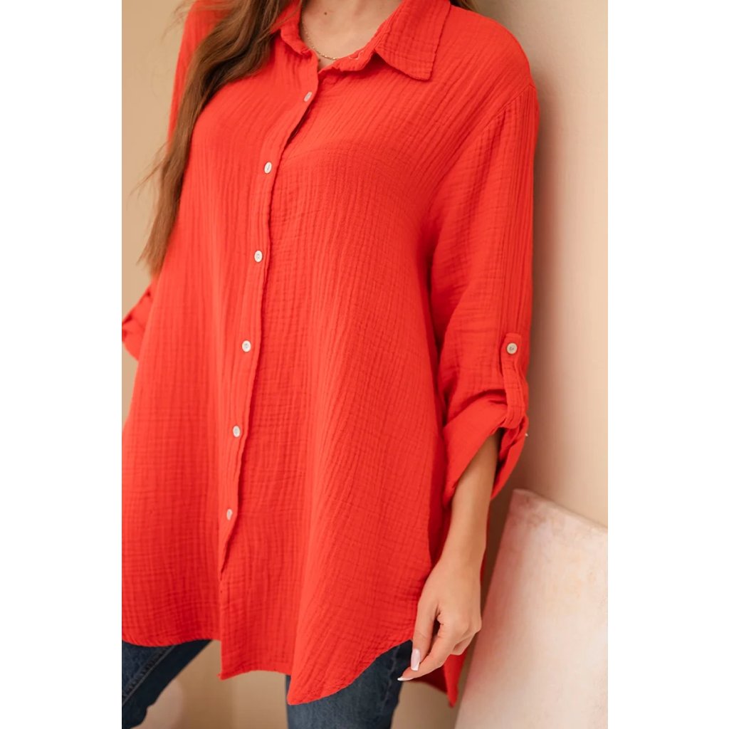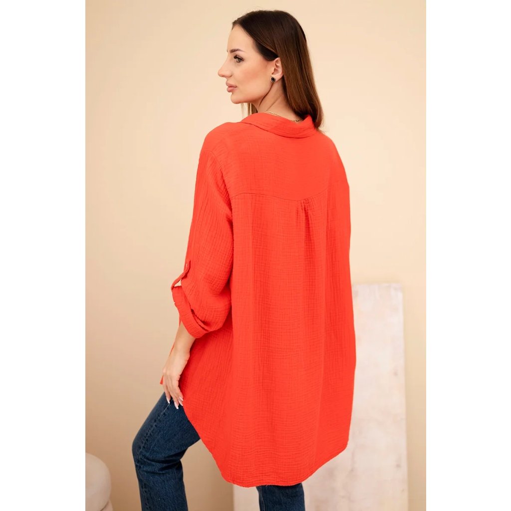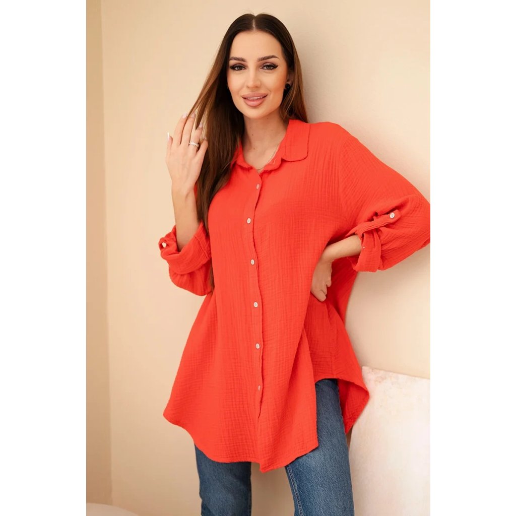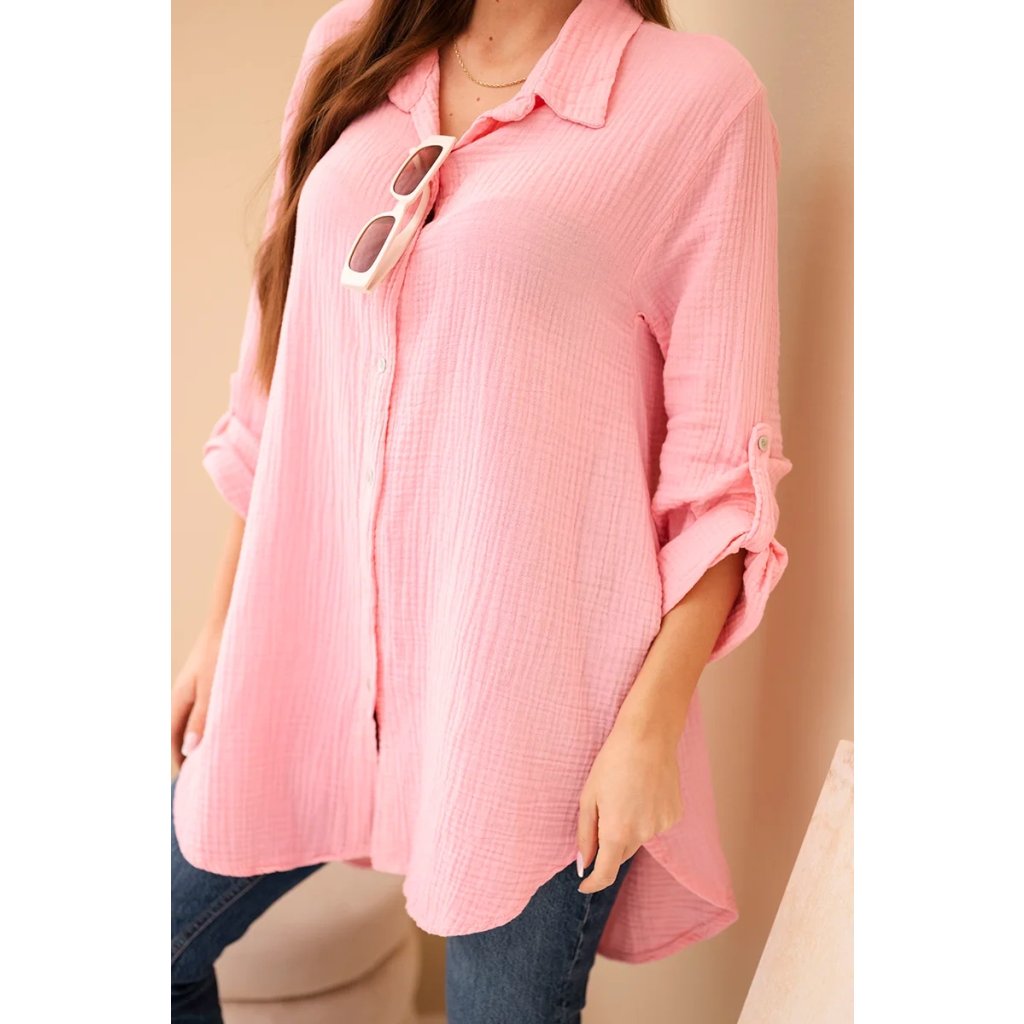 Mušelínová košeľa je esencia pohodlia a nadčasovej elegancie. Vyrobená z ľahkého, priedušného mušelínu, je ideálna na každé ročné obdobie, poskytujúc pohodlie nosenia a voľnosť pohybu. Jej univerzálny strih spôsobuje, že sa skvelo uplatní ako v ležérnych štýloch, tak aj vo formálnejších kombináciách. Jemná štruktúra materiálu dodáva subtílny šarm a starostlivé dokončenie zvýrazňuje vysokú kvalitu spracovania. Mušelínová košeľa je nevyhnutným prvkom šatníka pre osoby, ktoré oceňujú spojenie klasiky s moderným štýlom. Veľkosť je univerzálna a bude vhodná pre ženy s veľkosťou S, M alebo L.