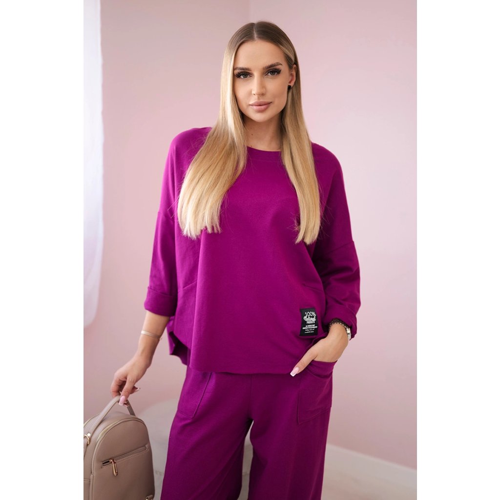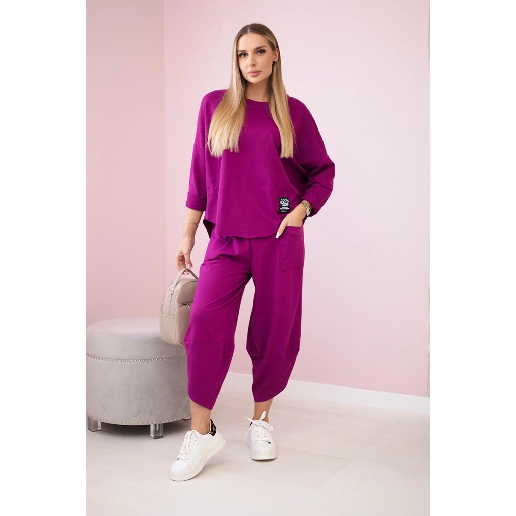 Bavlnená súprava mikina + nohavice slivková