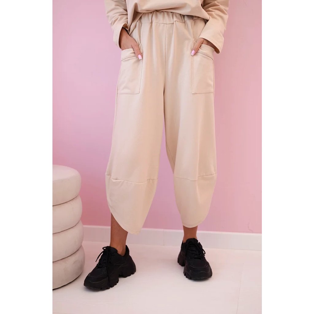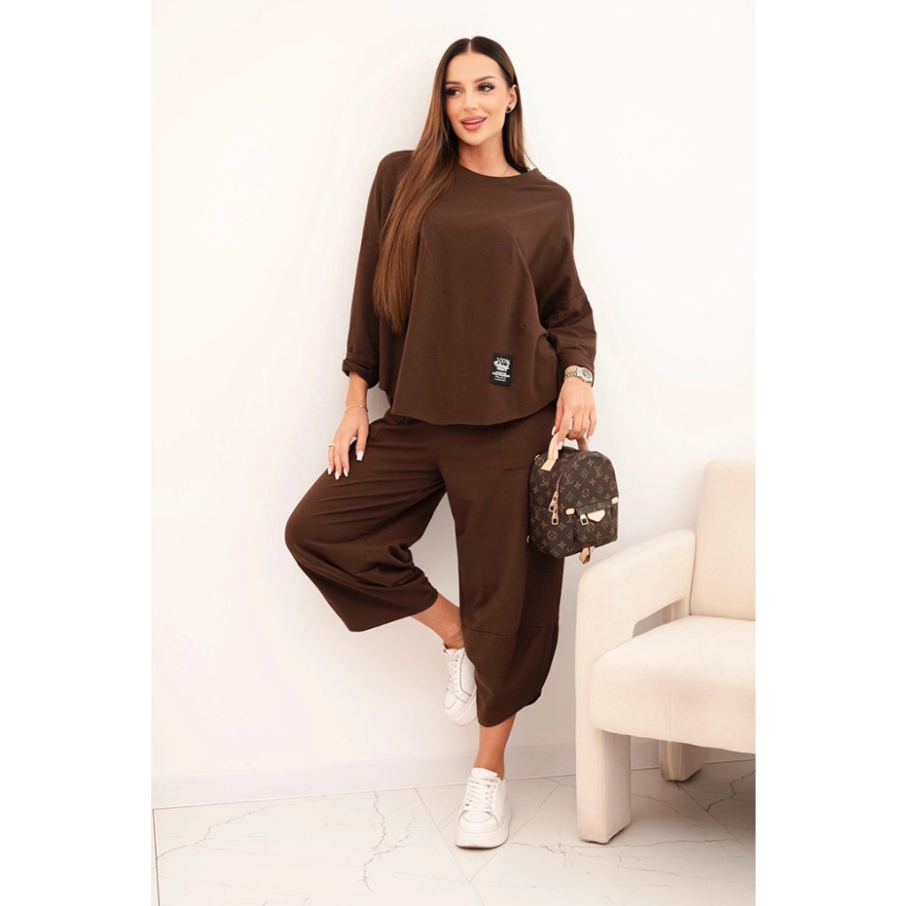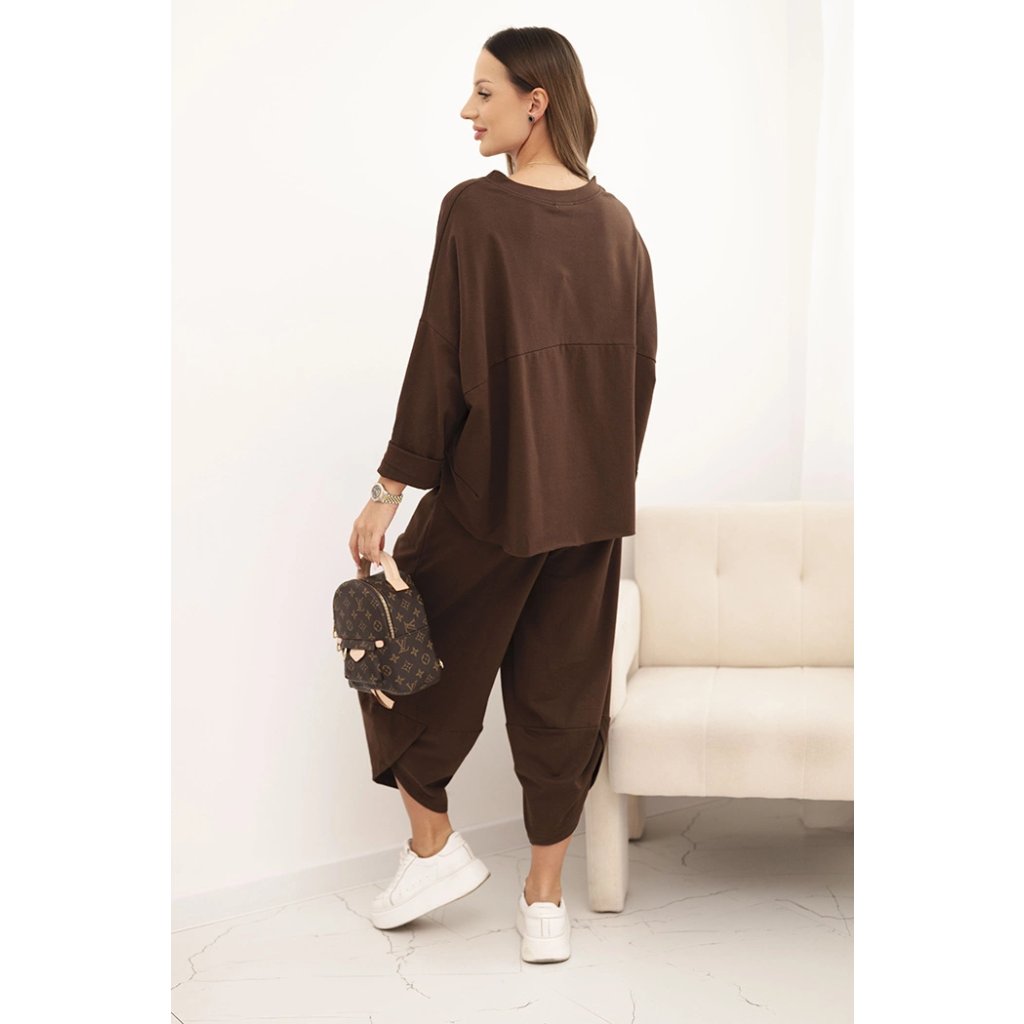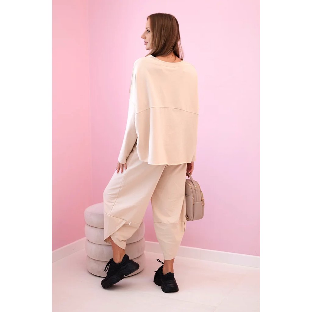 Bavlnená súprava mikina + nohavice tmavo béžová