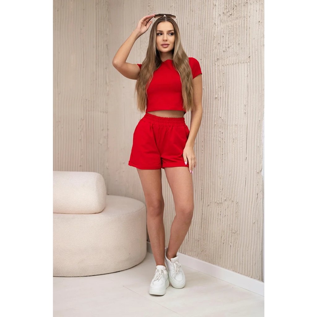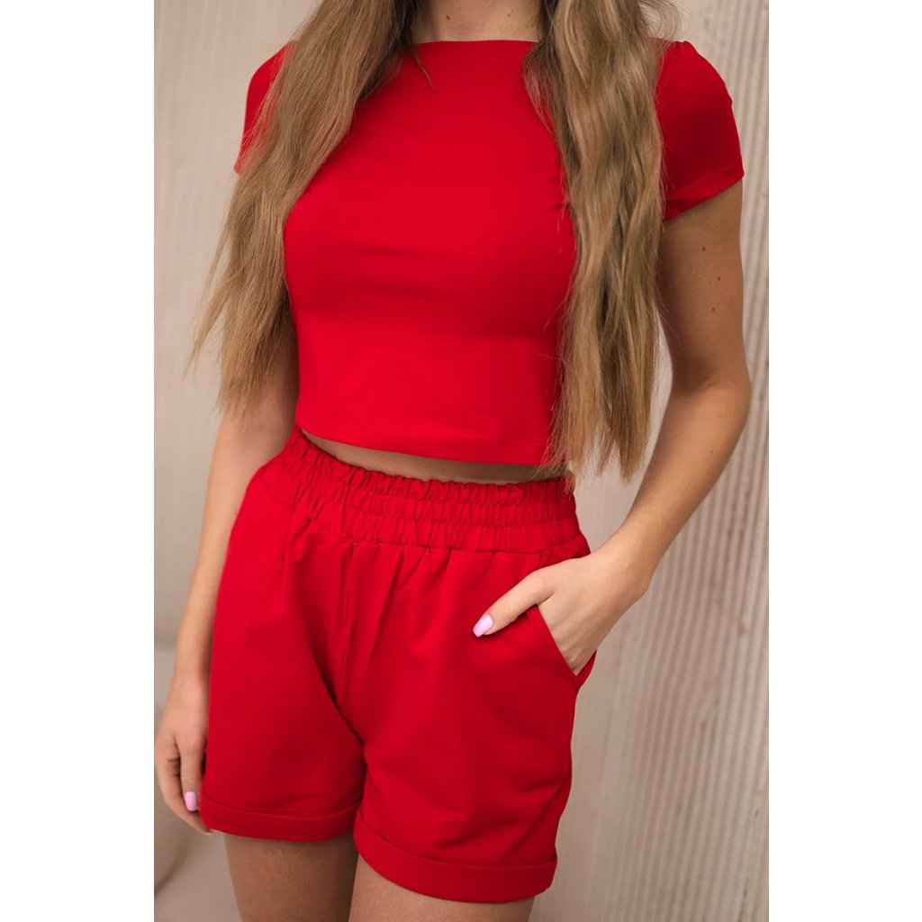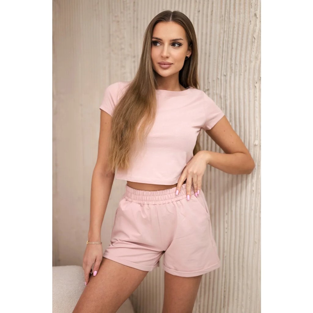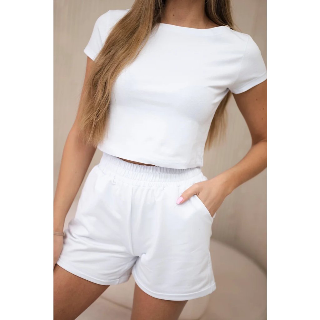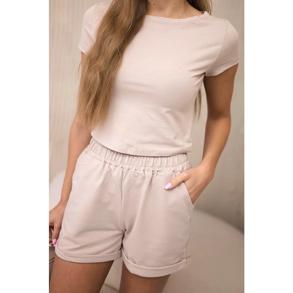 Predstavujeme vám módnu súpravu. Súprava sa skladá z blúzky a šortiek. Šortky s vreckami s gumou v páse a viazaním. Súprava je vyrobená z vysokokvalitného materiálu. Veľkosť je univerzálna a bude vhodná pre dámy vo veľkosti S, M, L, XL.