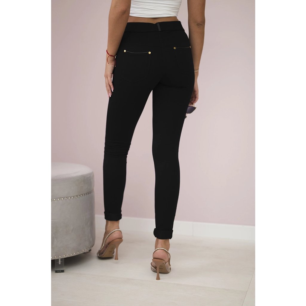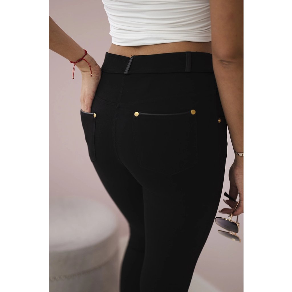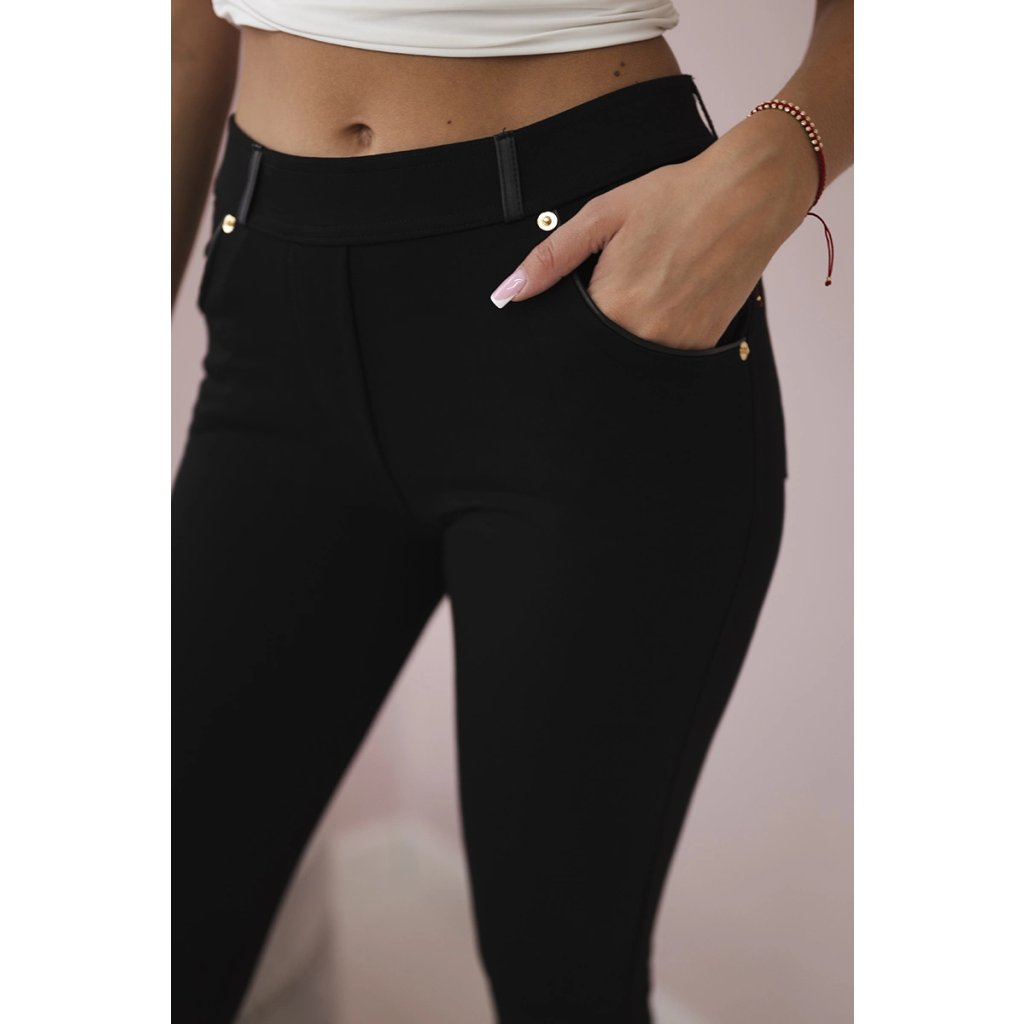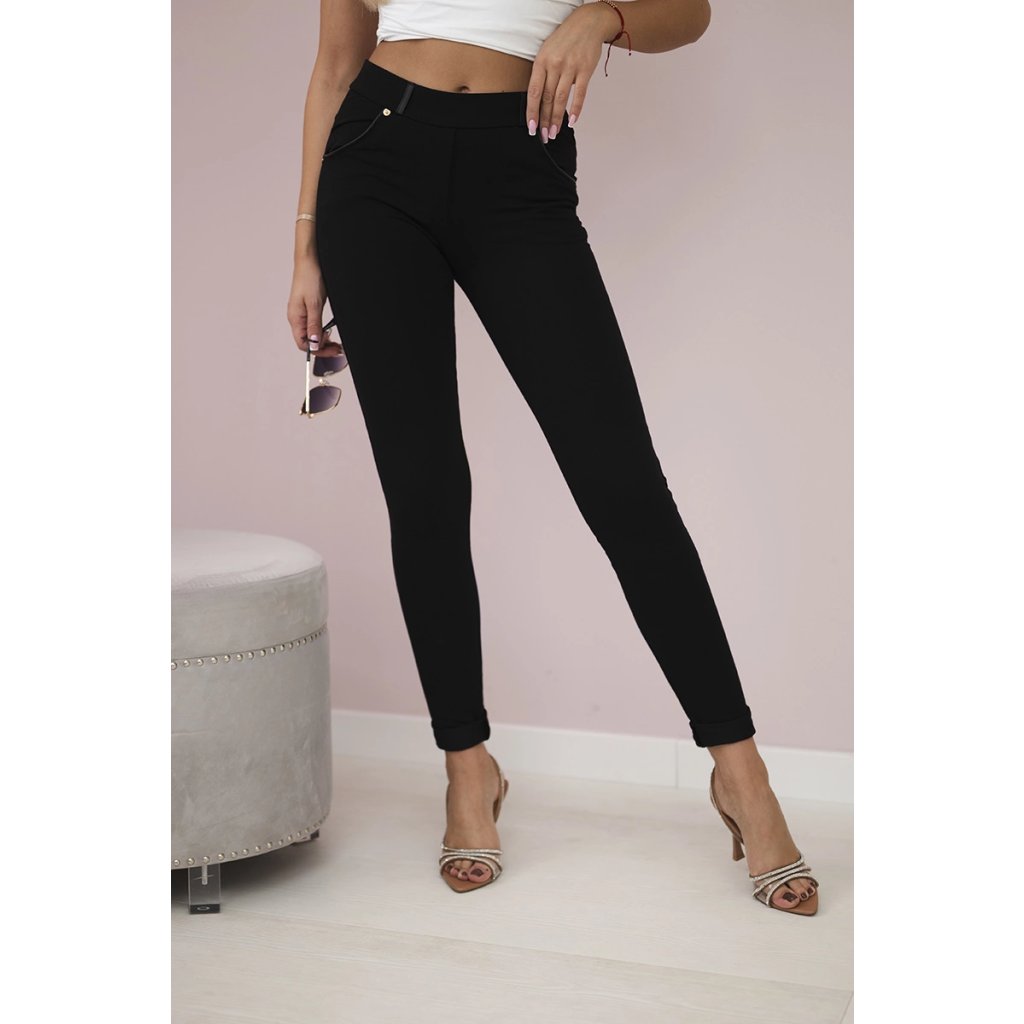 Bavlnené nohavice s prešívaním pri vreckách čierne