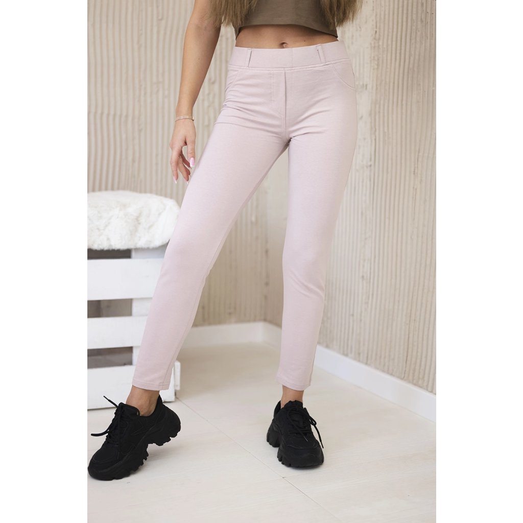 Bavlnené nohavice s vreckami vzadu tmavá púdrová ružová