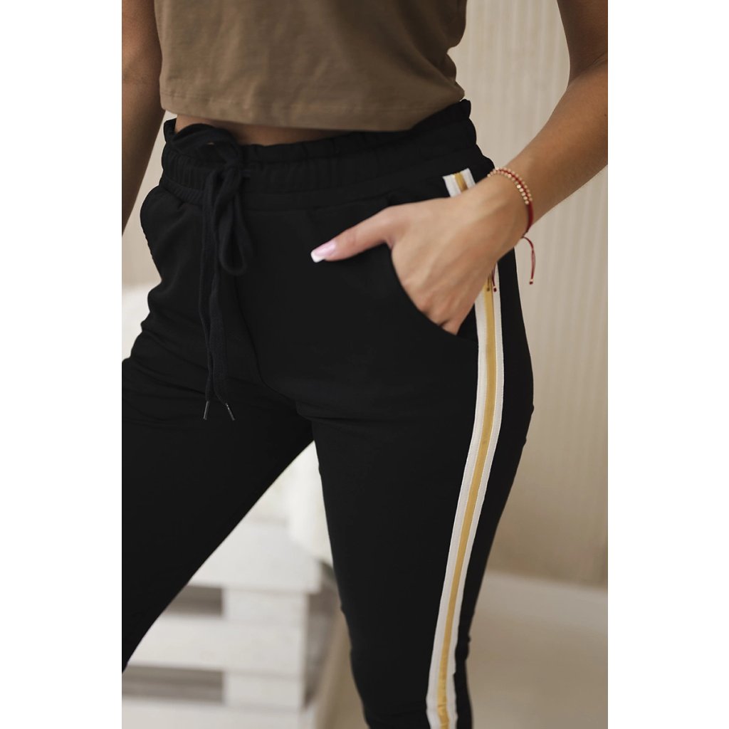 Bavlnené nohavice so zlatým lampasom čierne