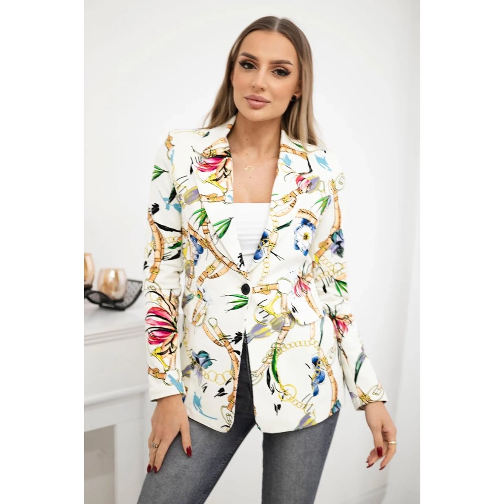 Bavlnené sako na gombík s potlačou je štýlovým kúskom šatníka, ktorý spája klasiku s nádychom modernosti. Vyrobené z vysoko kvalitnej bavlny, poskytuje pohodlie pri nosení a je ideálne na celý deň. Unikátna potlač mu dodáva výrazný charakter, vďaka čomu sa odlišuje od klasických modelov. Zapínanie na gombík zdôrazňuje elegantný strih a dobre vytvarovaný strih sa skvele prispôsobí postave, zvýrazňujúc jej prednosti. Je univerzálnou voľbou na rôzne príležitosti — od neformálnych stretnutí po polofomálne výjazdy. Skvele sa hodí ako k jednoduchým nohaviciam, tak k džínsom, pričom do celého outfitu pridáva módny prvok. Ideálne pre osoby, ktoré si cenia pohodlie a nezvyčajný štýl. Sako má podšívku. Sako dostupné vo veľkostiach M, L, XL.
