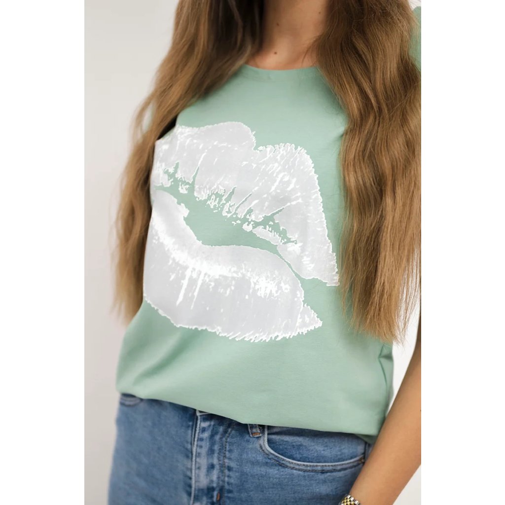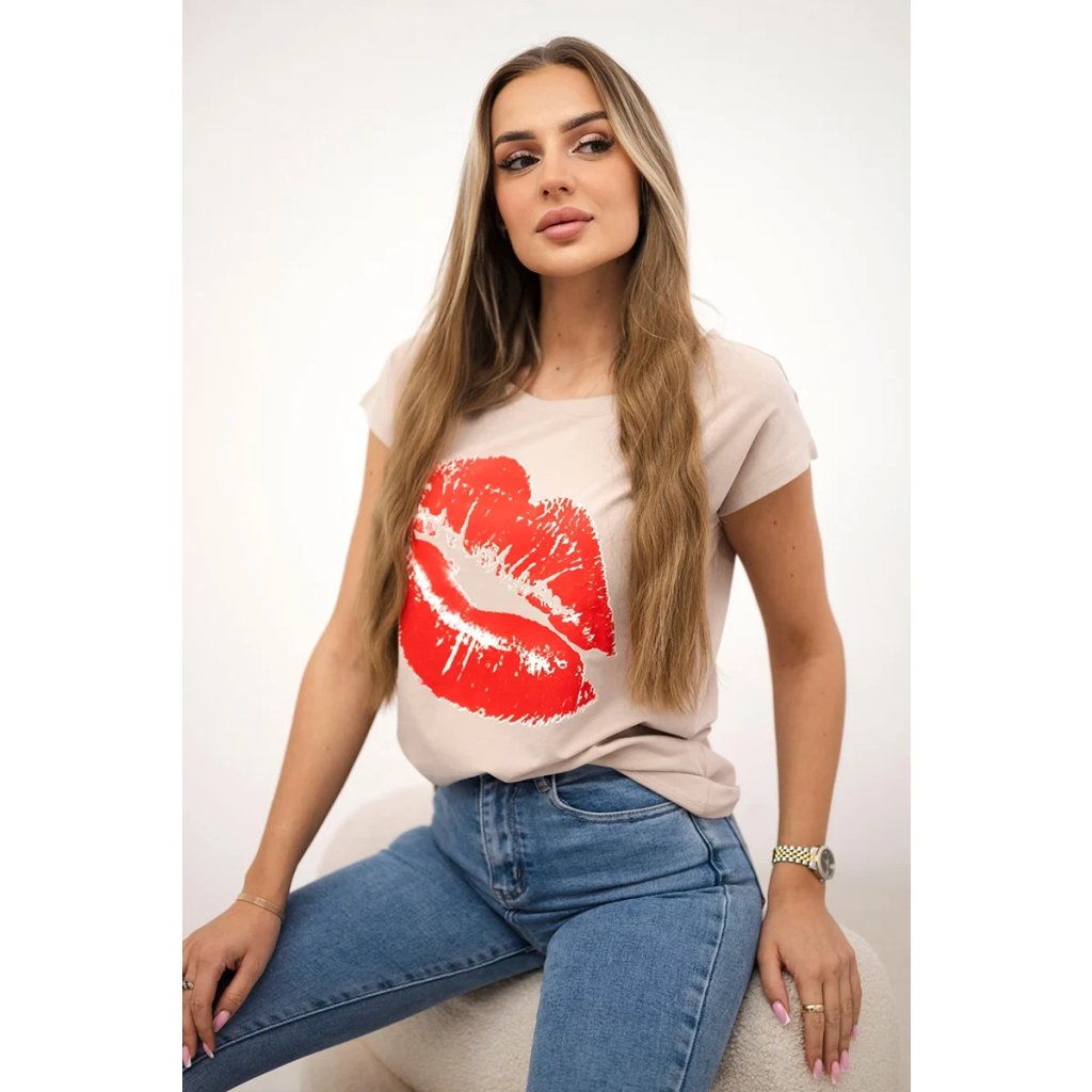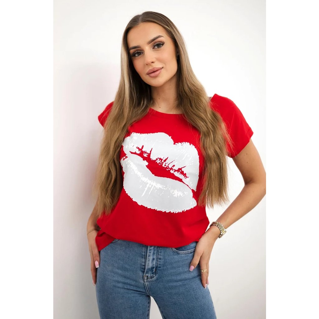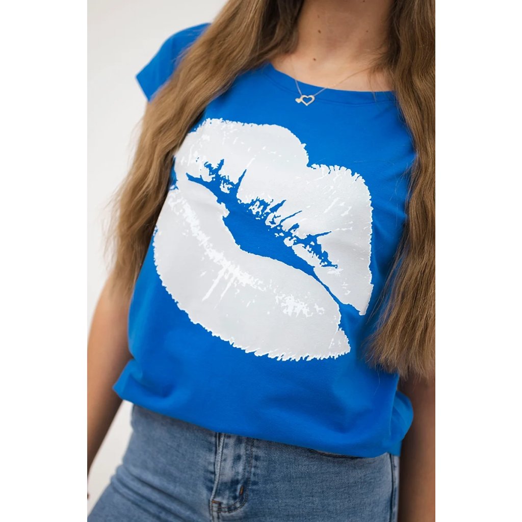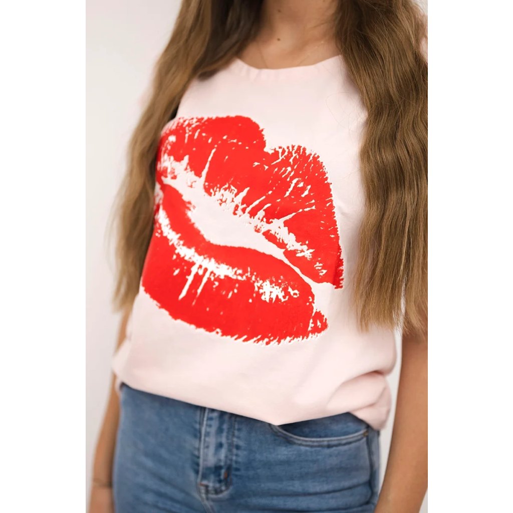 Predstavujeme vám módnu blúzku. Blúzka s potlačou pier. Blúzka s krátkym rukávom. Skvelá grafika na tričku. Blúzka ideálna na leto k šortkám. Blúzka je vyrobená z vysoko kvalitného materiálu. Veľkosť je univerzálna a bude vhodná pre dámy vo veľkostiach S, M alebo L.