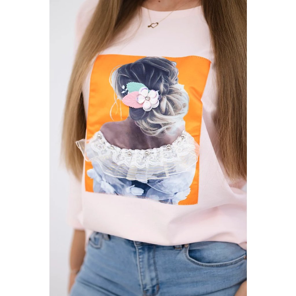 Predstavujeme vám super blúzku. Blúzka má našitú grafiku vpredu znázorňujúcu dievča. Táto blúzka sa vyznačuje moderným vzhľadom a precíznym spracovaním. Určite by nemala chýbať vo vašom šatníku. Blúzka je vyrobená z vysokokvalitného materiálu. Univerzálna veľkosť bude vhodná pre dámy nosiace oblečenie vo veľkosti S, M alebo L.