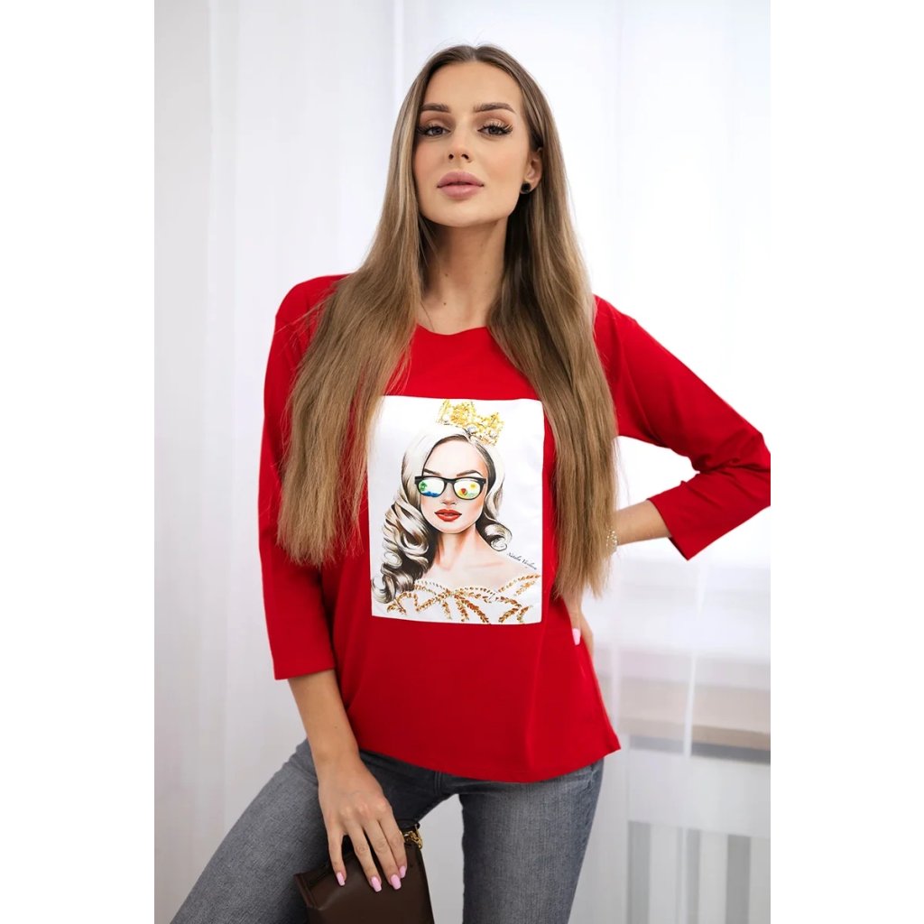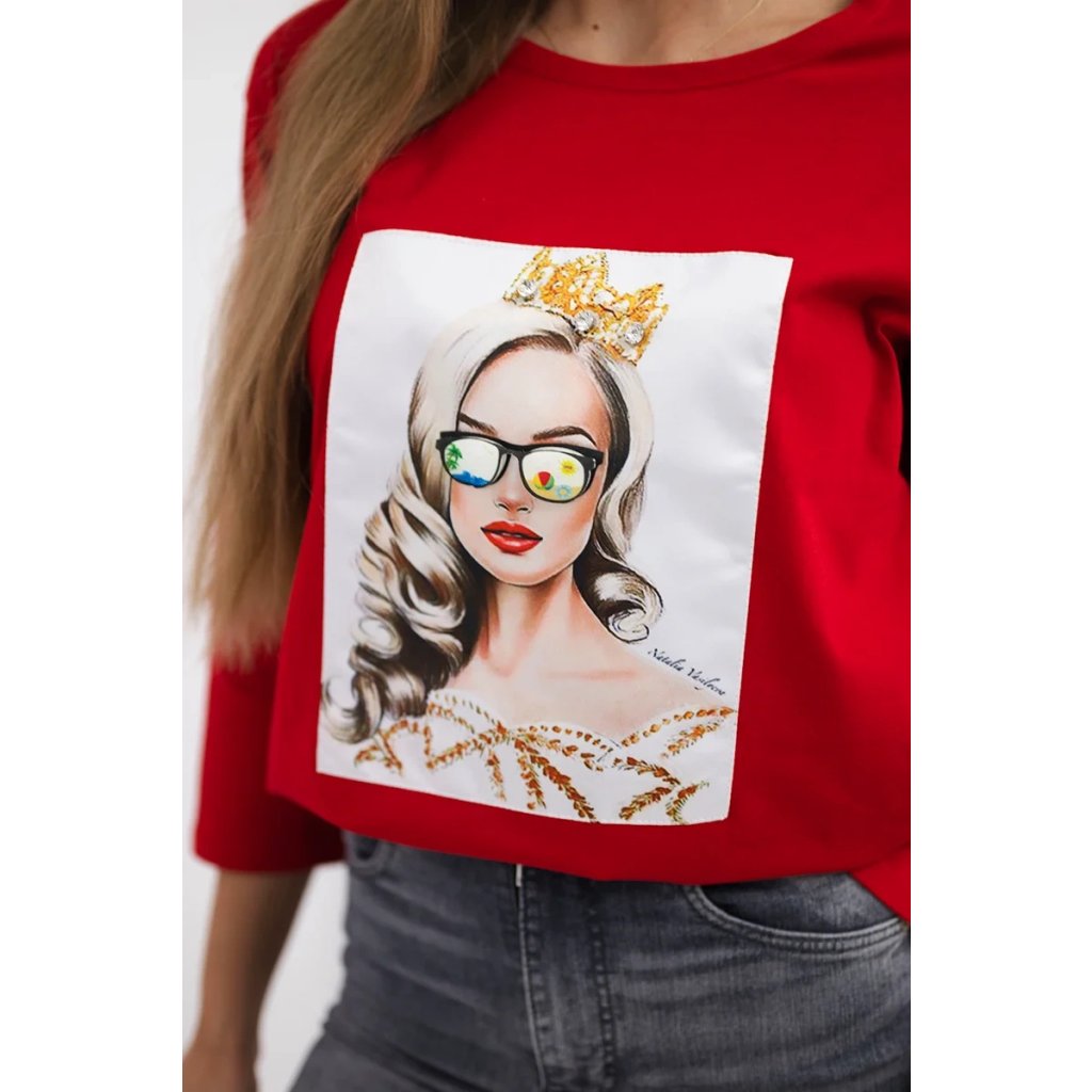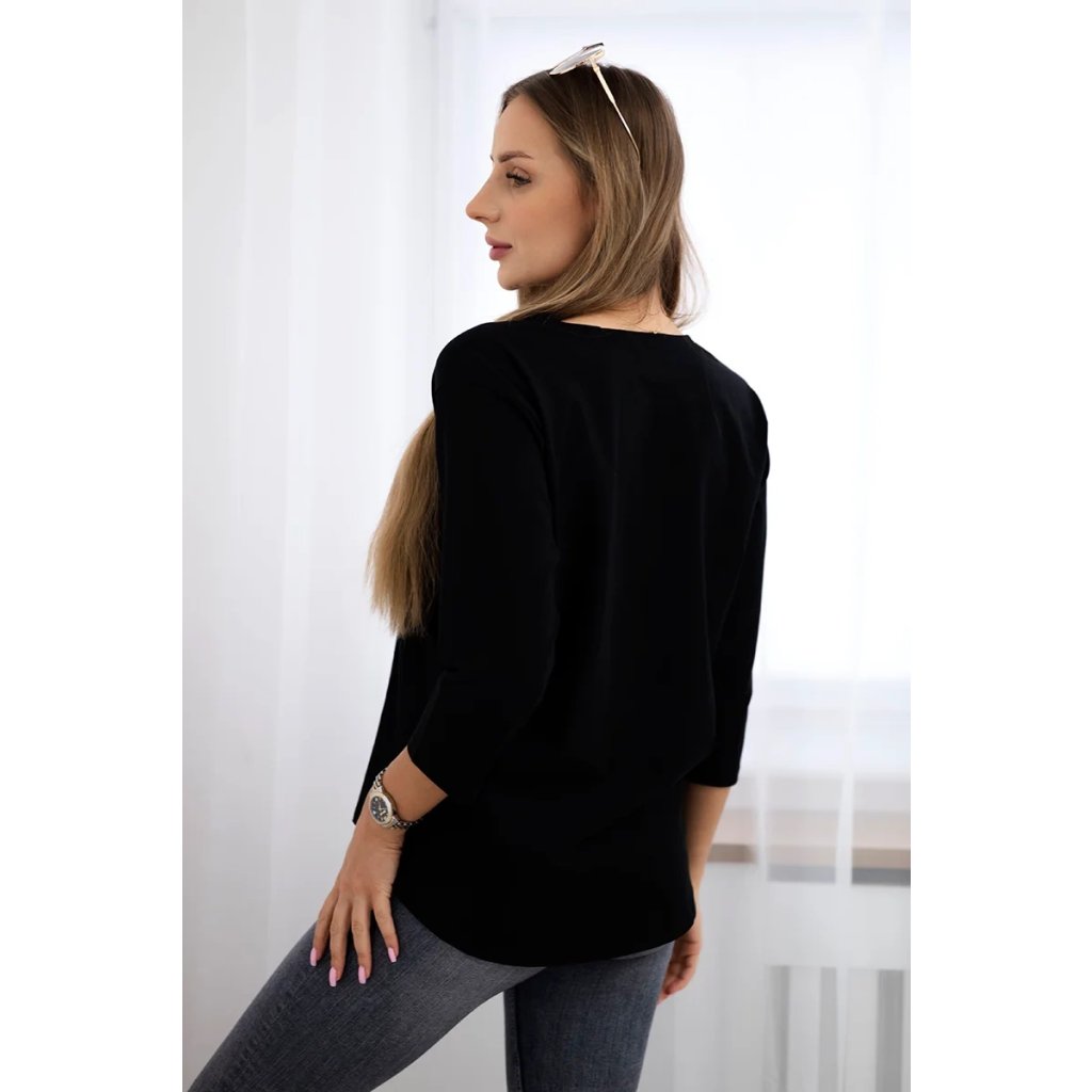 Predstavujeme vám módnu blúzku. Blúzka má našitú grafiku. Táto blúzka sa vyznačuje módnym vzhľadom a precíznym spracovaním. Určite nemôže chýbať vo vašom šatníku. Blúzka je vyrobená z vysokokvalitného materiálu. Univerzálna veľkosť bude vhodná pre dámy nosiace oblečenie vo veľkosti S, M alebo L.