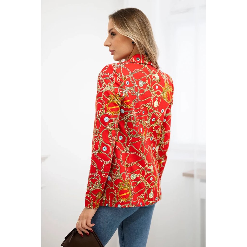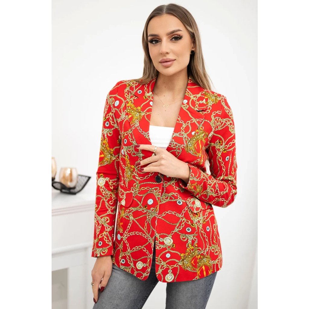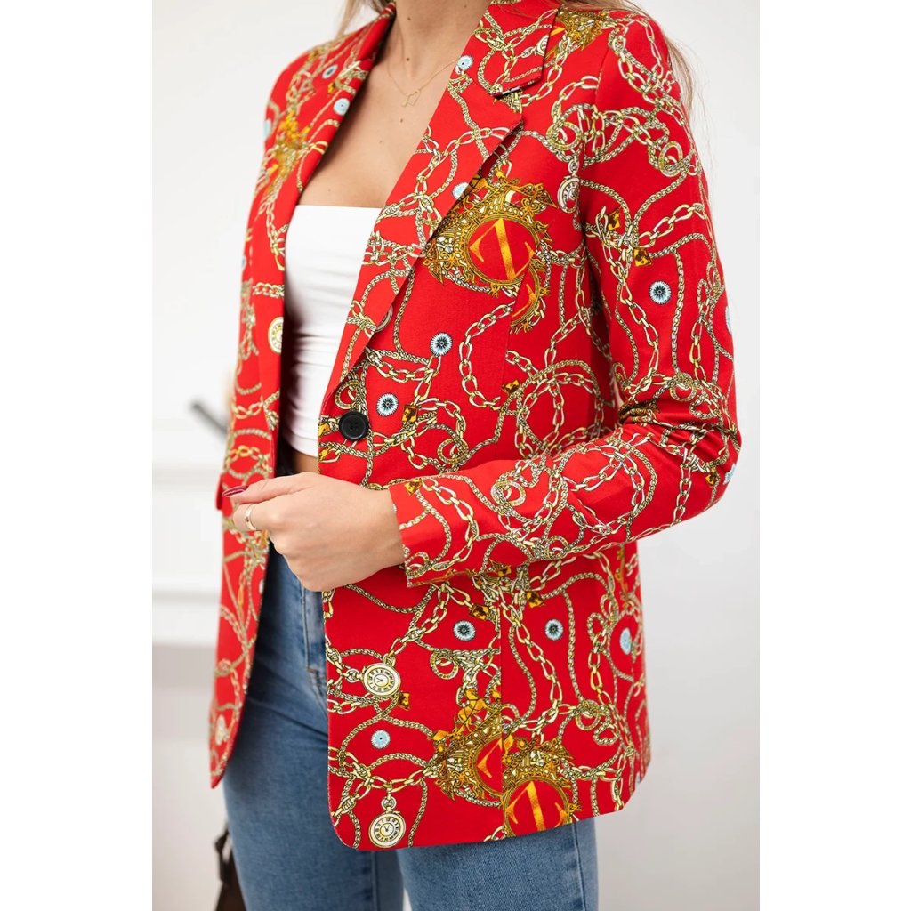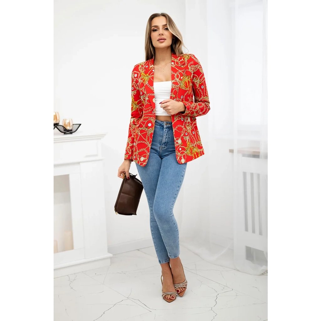 Červené bavlnené sako na gombík s potlačou