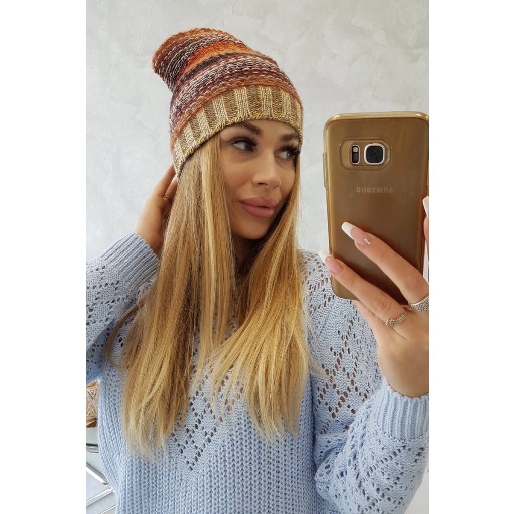 Čiapka s flísom Krystyna K207 hnedá+béžová