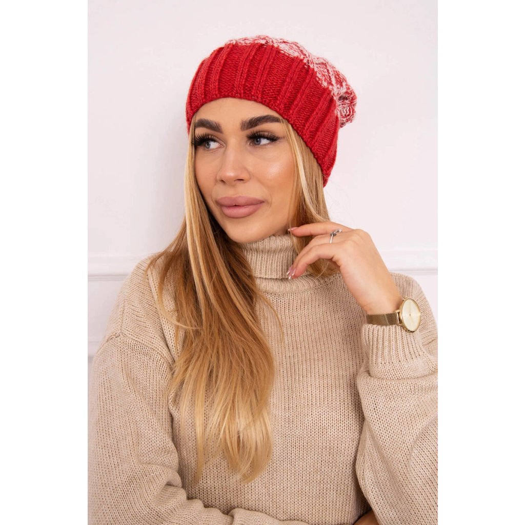 Čiapka s flísom Milano K203 ecru melírovaná+červená