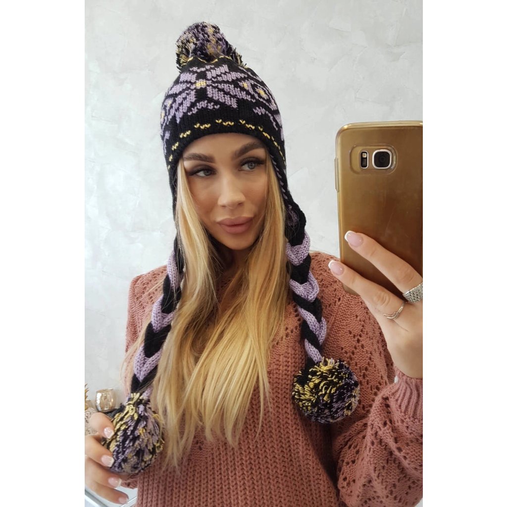 Čiapka s vrkočmi Fabia K272 čierna+fialová