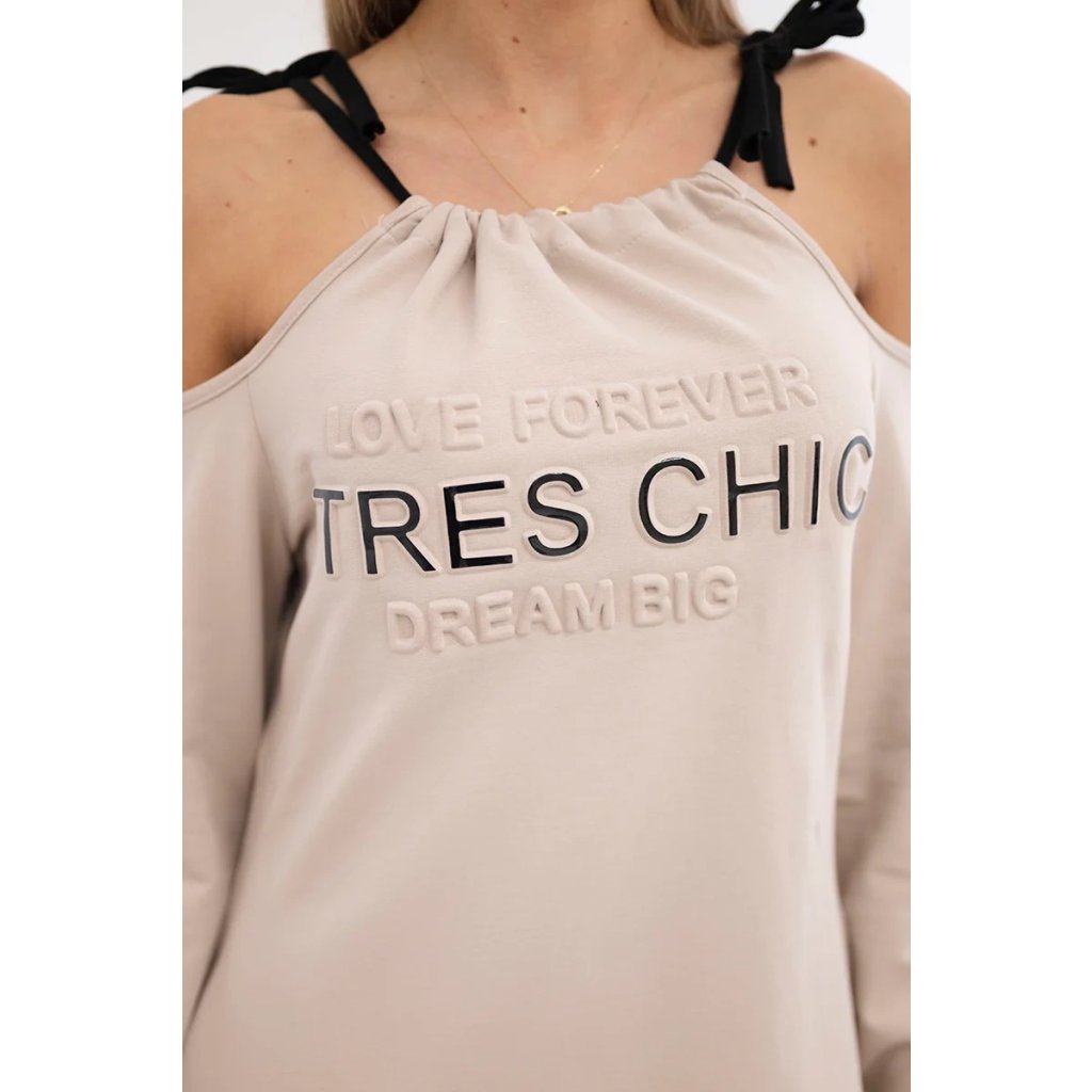 Predstavujeme Vám pohodlné šaty s nápisom Tres Chic. Šaty sú vyrobené z vysokokvalitného materiálu. Veľkosť je univerzálna a bude vhodná pre dámy nosiace veľkosť S, M alebo L.