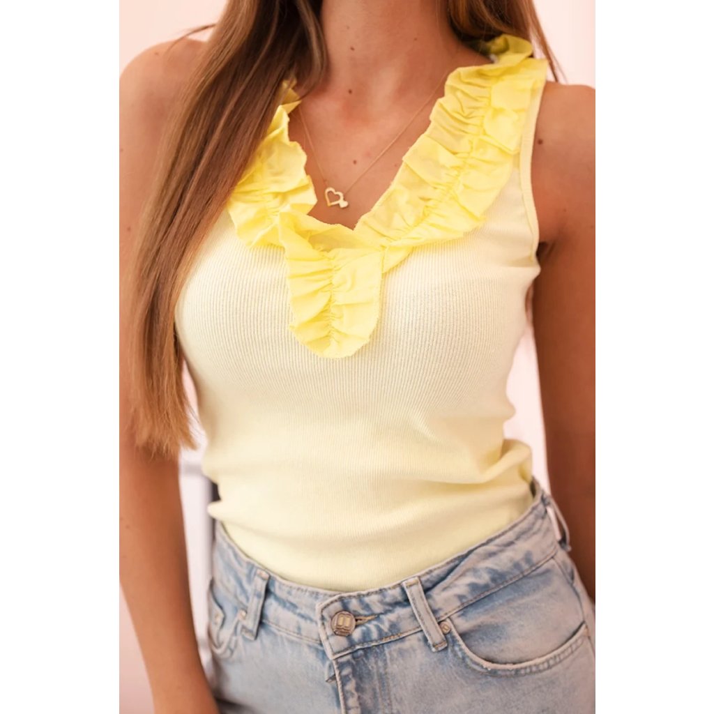 Dámska bavlnená blúzka bez rukávov so volánom žltá