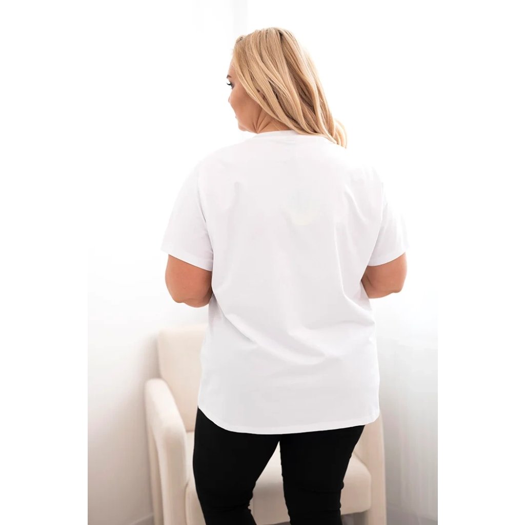 Ak hľadáte pohodlie, štýl a štipku lesku v jednom – táto dámska blúzka s potlačou a flitrami Plus Size bude vynikajúcou voľbou! Vyznačuje sa zaujímavou, módnou potlačou s lesklými detailmi a aplikáciami, ktoré priťahujú pozornosť a dodávajú charakter každému outfitu. Strih oversize poskytuje voľnosť pohybu a dokonale maskuje nedokonalosti postavy, a krátky rukáv robí z nej ideálny kúsok na teplejšie dni. Skvelo vyzerá v kombinácii s džínsami aj legínami – ideálna na každodenné výlety, stretnutia s priateľmi či voľné dni v práci. Model určený dámam nosiacim veľkosti Plus Size – XXL, XXXL a väčšie.