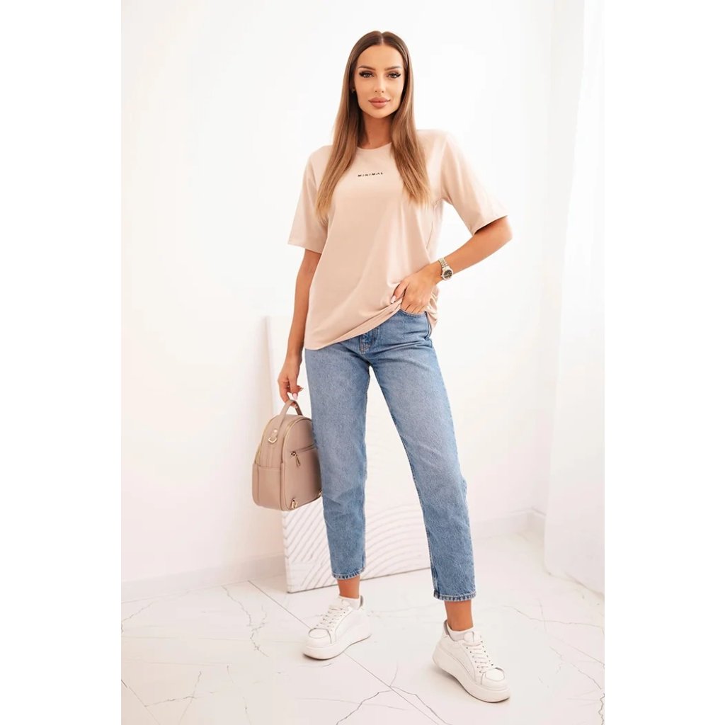 Dámska bavlnená blúzka s potlačou Minimal béžová