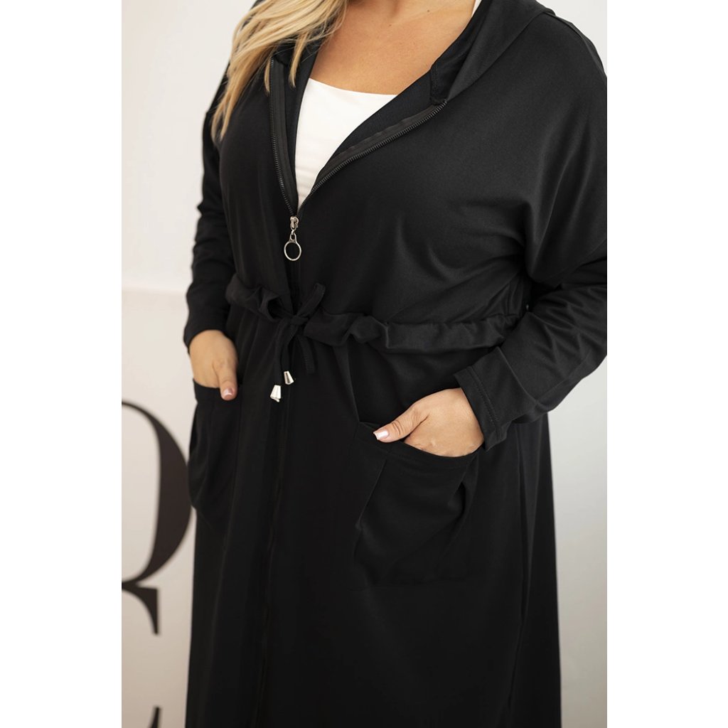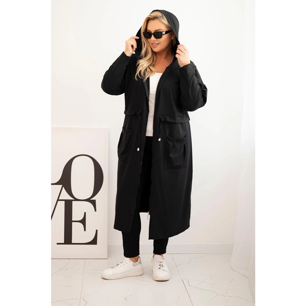 Dámska bavlnená mikina Plus Size s kapucňou a vreckami čierna