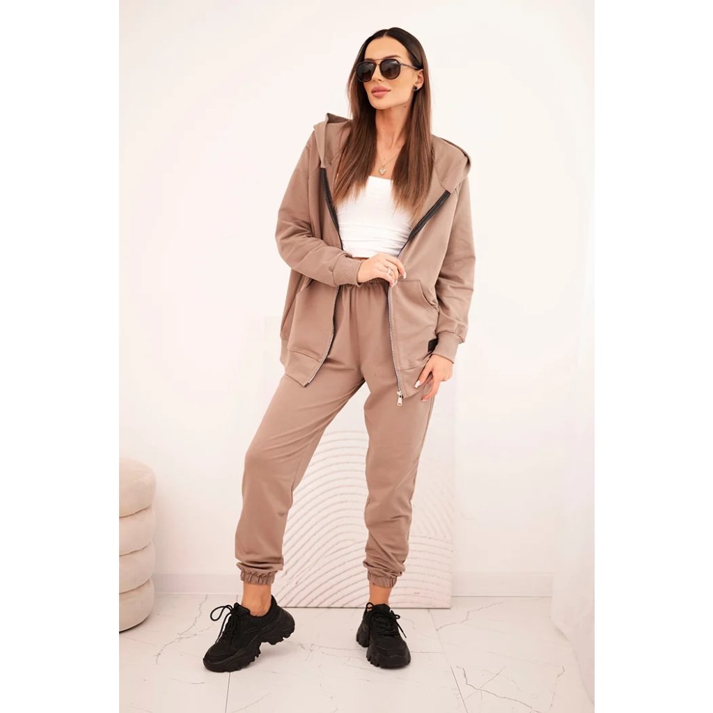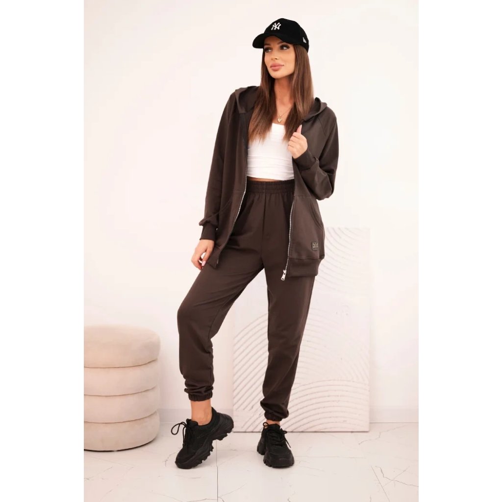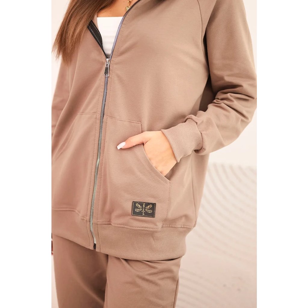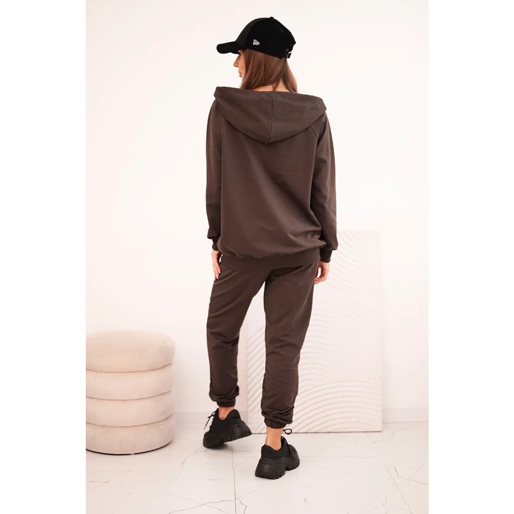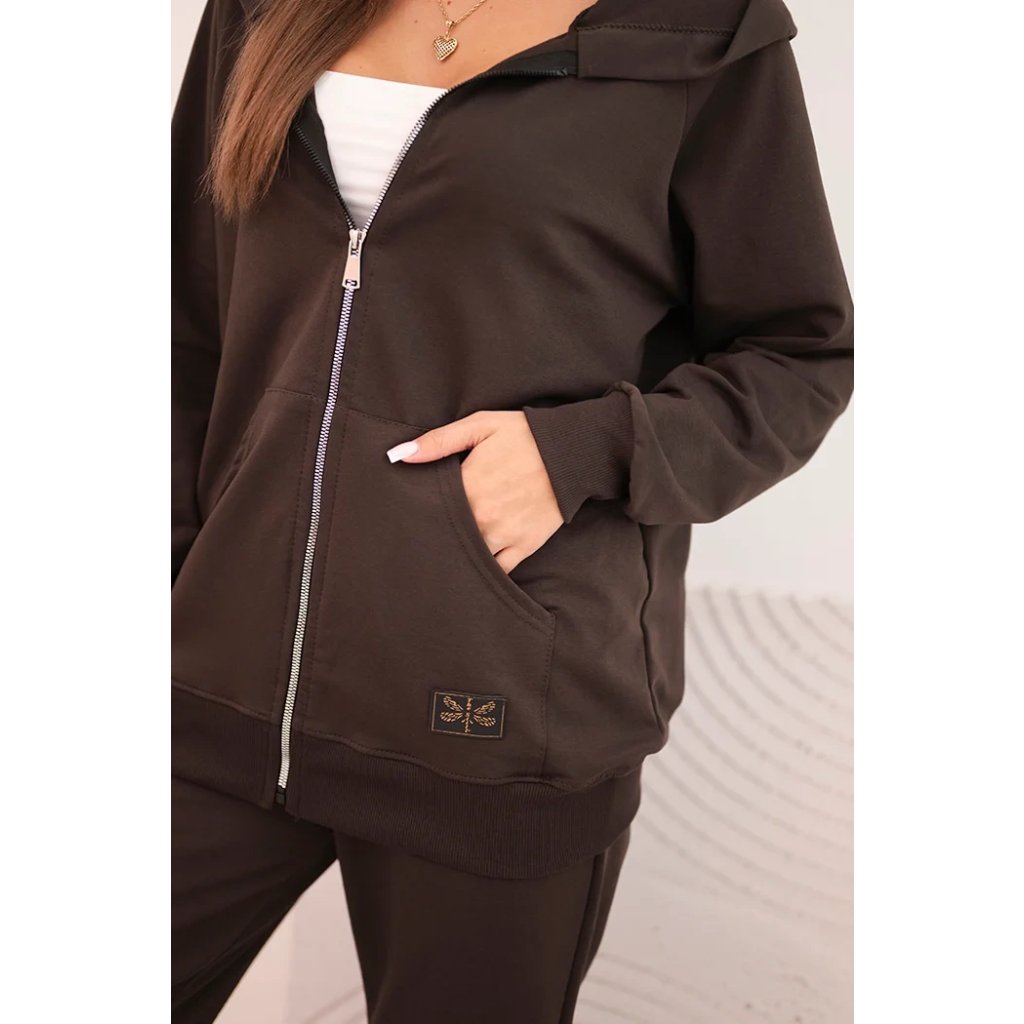 Dámska bavlnená súprava s kapucňou a zipsom hnedá