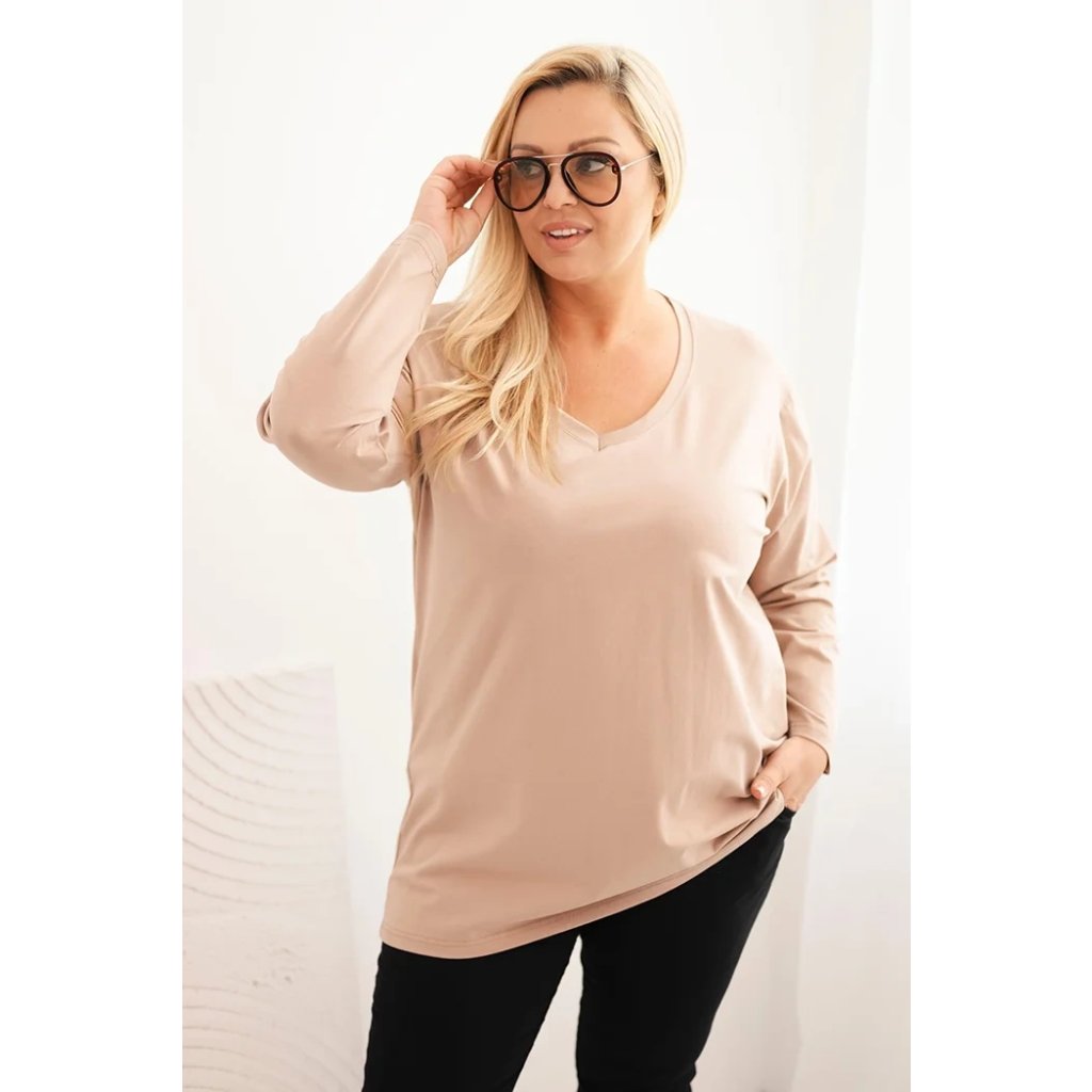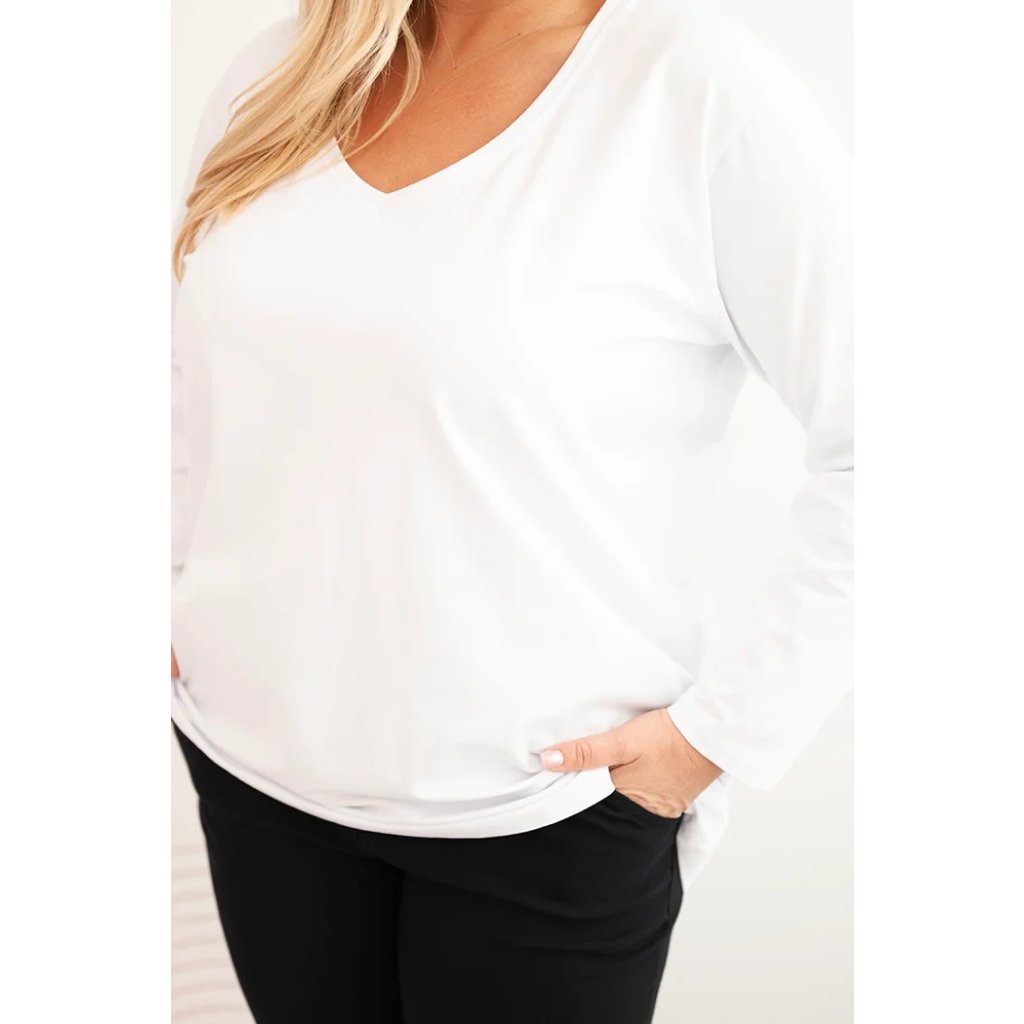 Dámska blúzka Plus Size s lodičkovým výstrihom biela