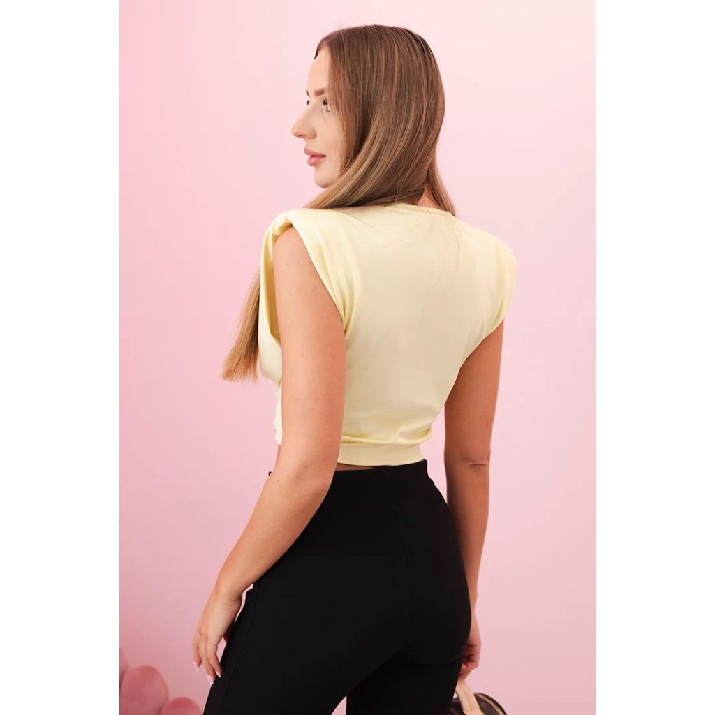 Štýlová a pútavá dámska blúzka s hlbokým výstrihom je návrhom pre ženy, ktoré radi zdôrazňujú svoj štýl a eleganciu. Model vyrobený z príjemného na dotyk, mierne elastického materiálu krásne sedí na postave a vytvára pôsobivý vzhľad. Charakteristické riasenie na ramenách a v páse, ako aj ozdobná zlatá spona vpredu dodávajú celkovému vzhľadu výnimočné kúzlo. Ideálna na večerné výjazdy, párty, stretnutia s priateľmi alebo rande – skvele sa hodí k nohaviciam s vysokým pásom aj k elegantnej sukni. Veľkosť je univerzálna a bude vhodná pre dámy vo veľkosti S, M alebo L.