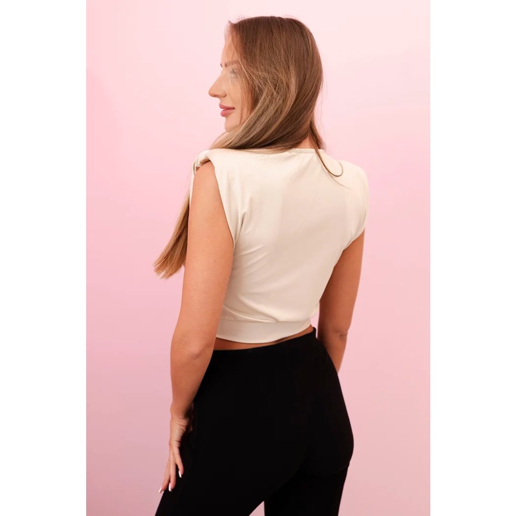 Dámska blúzka s hlbokým výstrihom a ozdobným detailom béžová
