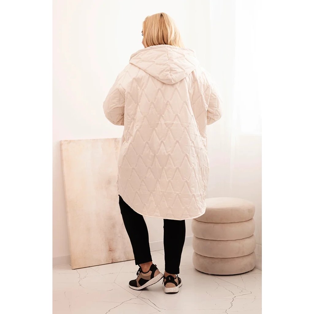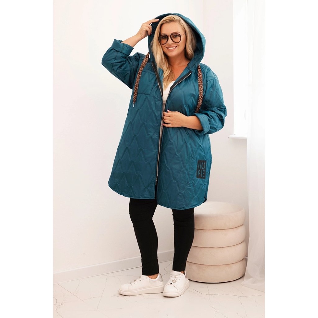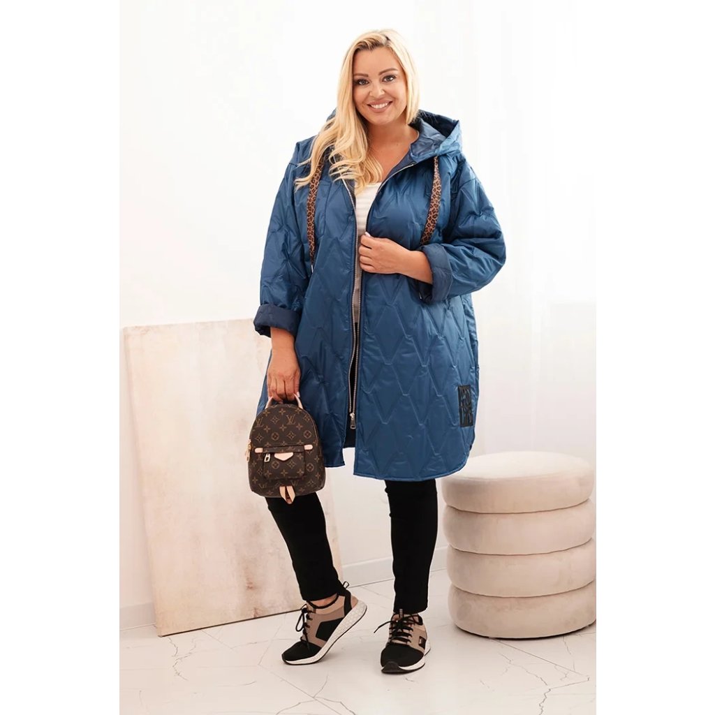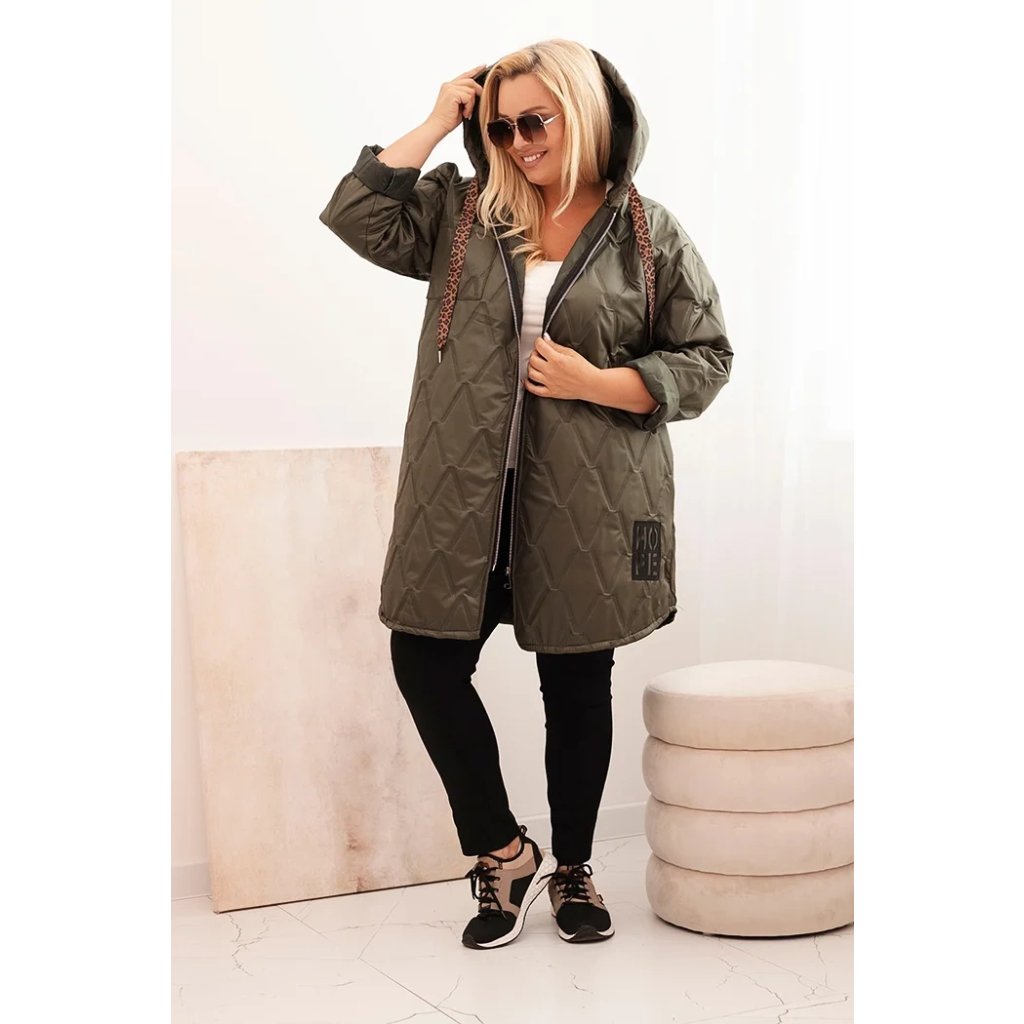 Štýlová dámska prešívaná bunda vo veľkosti plus size je ideálnou voľbou pre ženy nosiace väčšie veľkosti – od XL do 4XL. Jej voľný, oversized strih poskytuje maximálne pohodlie pri nosení a skvele sedí na postave bez obmedzovania pohybu. Model sa vyznačuje geometrickým prešívaním, ktoré opticky zužuje postavu, a módnou kapucňou so sťahovacou šnúrkou v leopardom vzore. Zips a praktické vrecko na hrudi podčiarkujú moderný a funkčný charakter bundy.