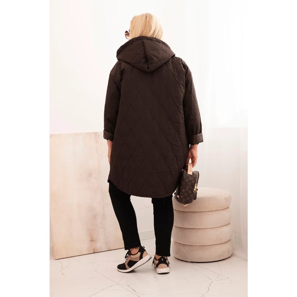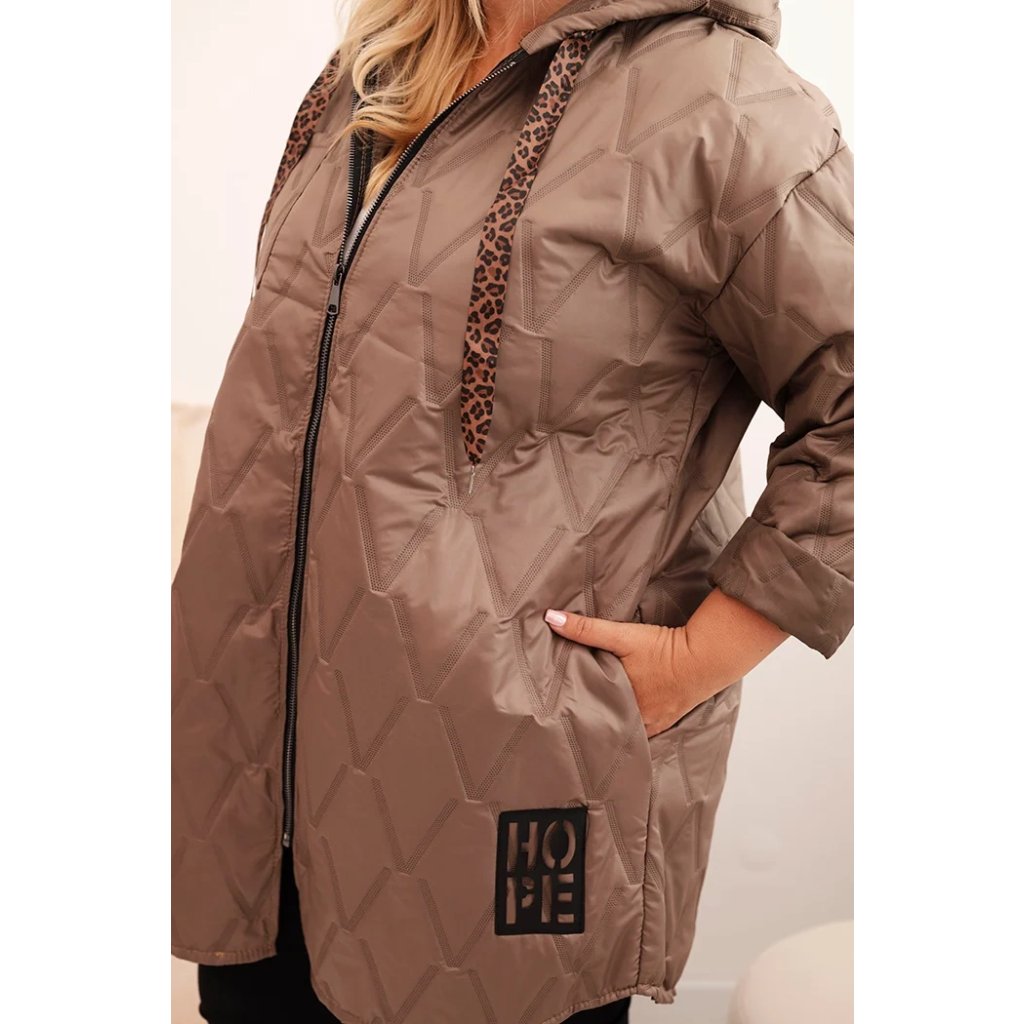 Dámska bunda Plus Size prešívaná s kapucňou a nápisom HOPE hnedá