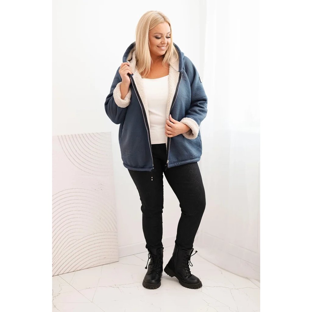 Zateplená dámska bunda plus size s mäkkým baranom vo vnútri je ideálnou voľbou na chladnejšie dni. Model s praktickou kapucňou, zapínaný na zips, kombinuje pohodlie, teplo a módny vzhľad. Vďaka voľnému strihu zaručuje voľnosť pohybu, a jemné zakončenie kožušinou pri rukávoch dodáva príjemný charakter.