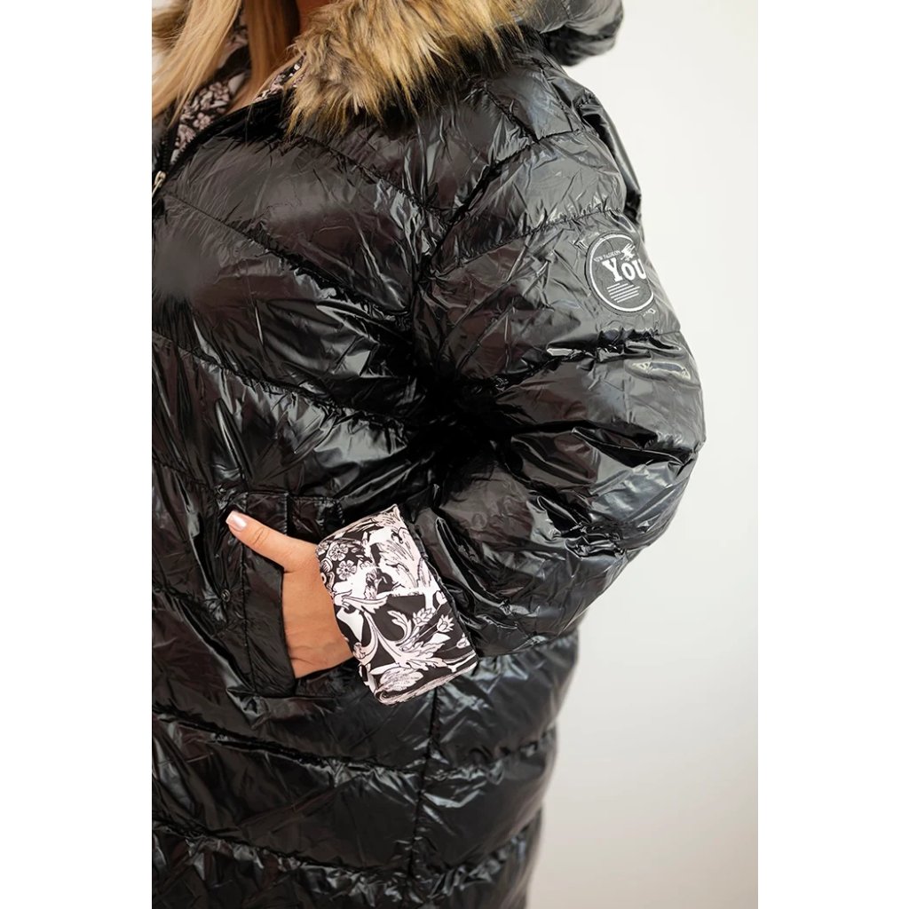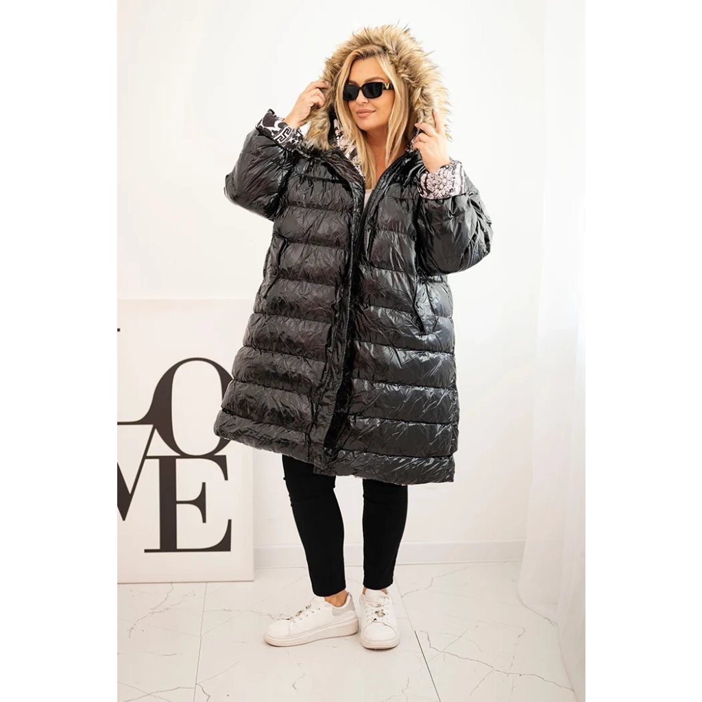 Dámska bunda Plus Size s kapucňou a kožušinou čierna