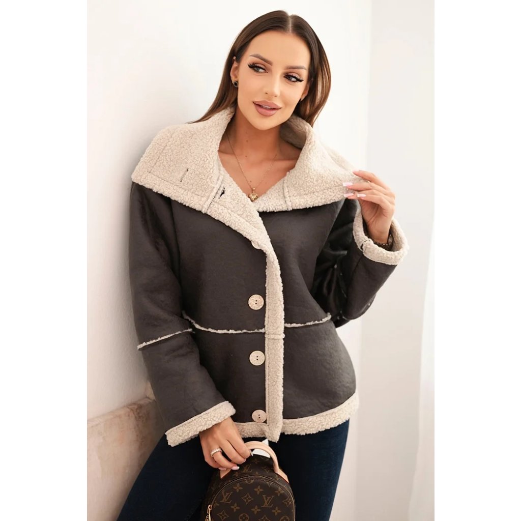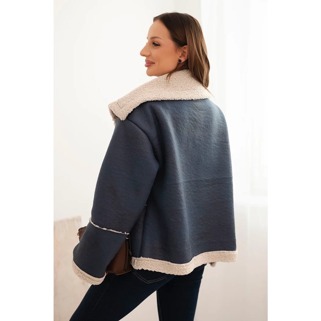 Kratší strih zaisťuje ľahkosť a voľnosť nosenia, a široké rukávy s vyhrnutou kožušinou pridávajú celkovému vzhľadu štýlový vzhľad. Model je výborný na jeseň a skorú zimu – ako k džínsam, tak k šatám.