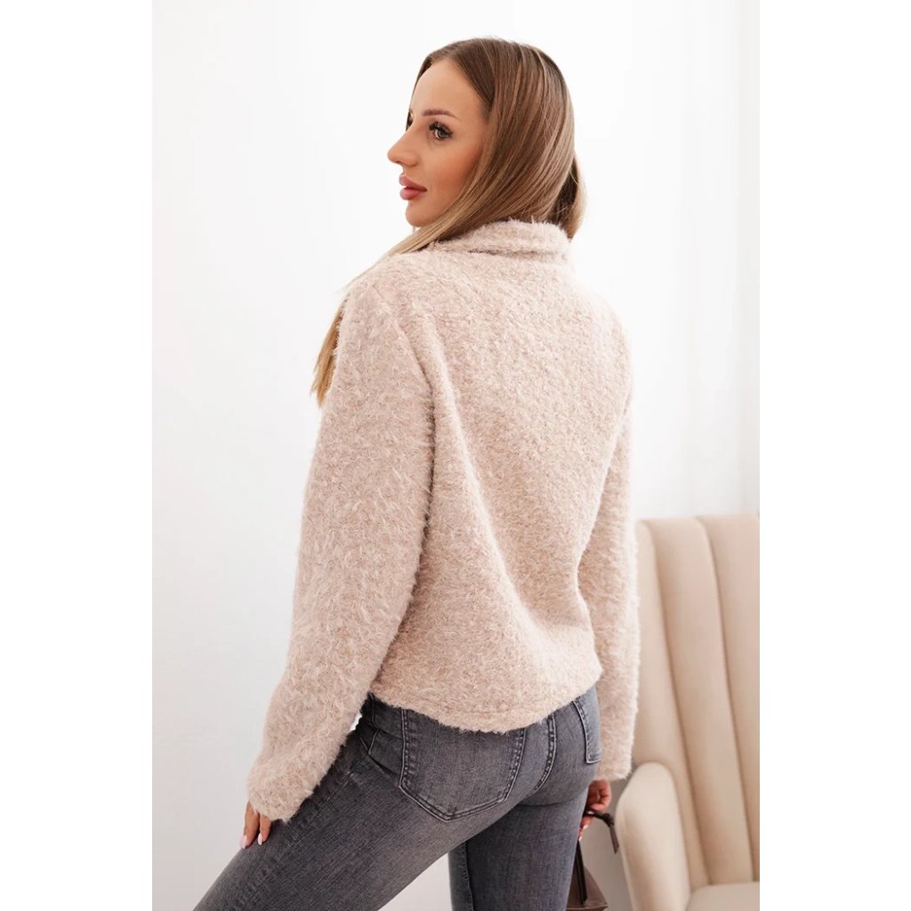 Dámska bunda s vlnou s nadýchanou štruktúrou a ozdobnými gombíkmi béžová