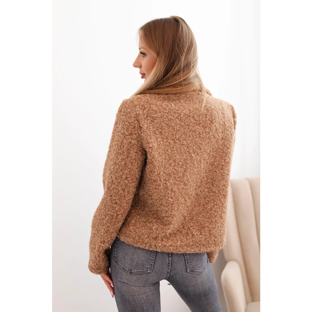 Štýlová dámska bunda s prímesou vlny je ideálnou kombináciou elegancie a pohodlia na chladnejšie dni. Vyrobená z mäkkého materiálu s jemne nadýchanou štruktúrou vyzerá veľmi efektne, a zároveň je nesmierne pohodlná na nosenie. Klasický golier, dekoratívne vrecká s chlopňami a zlaté gombíky jej dodávajú šmrnc a moderný charakter.