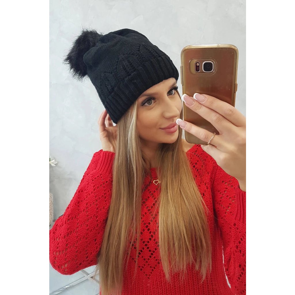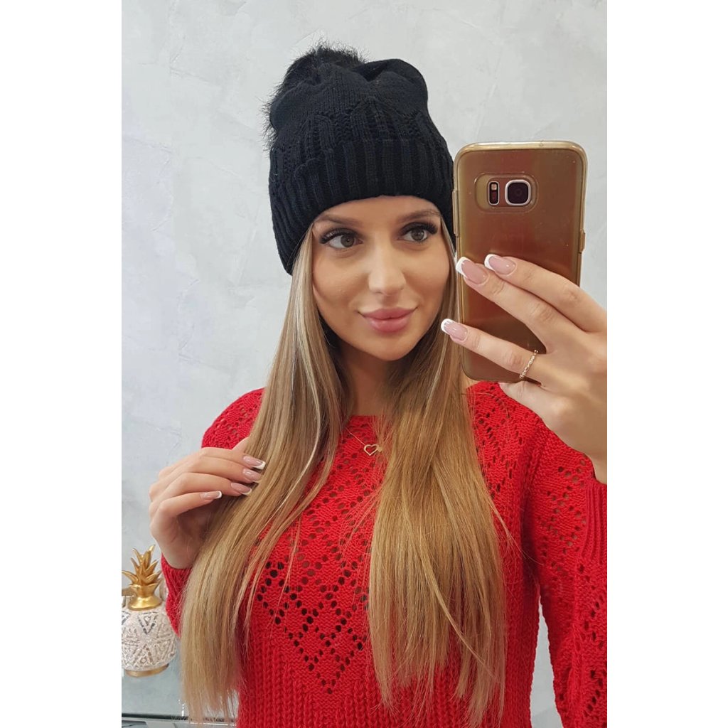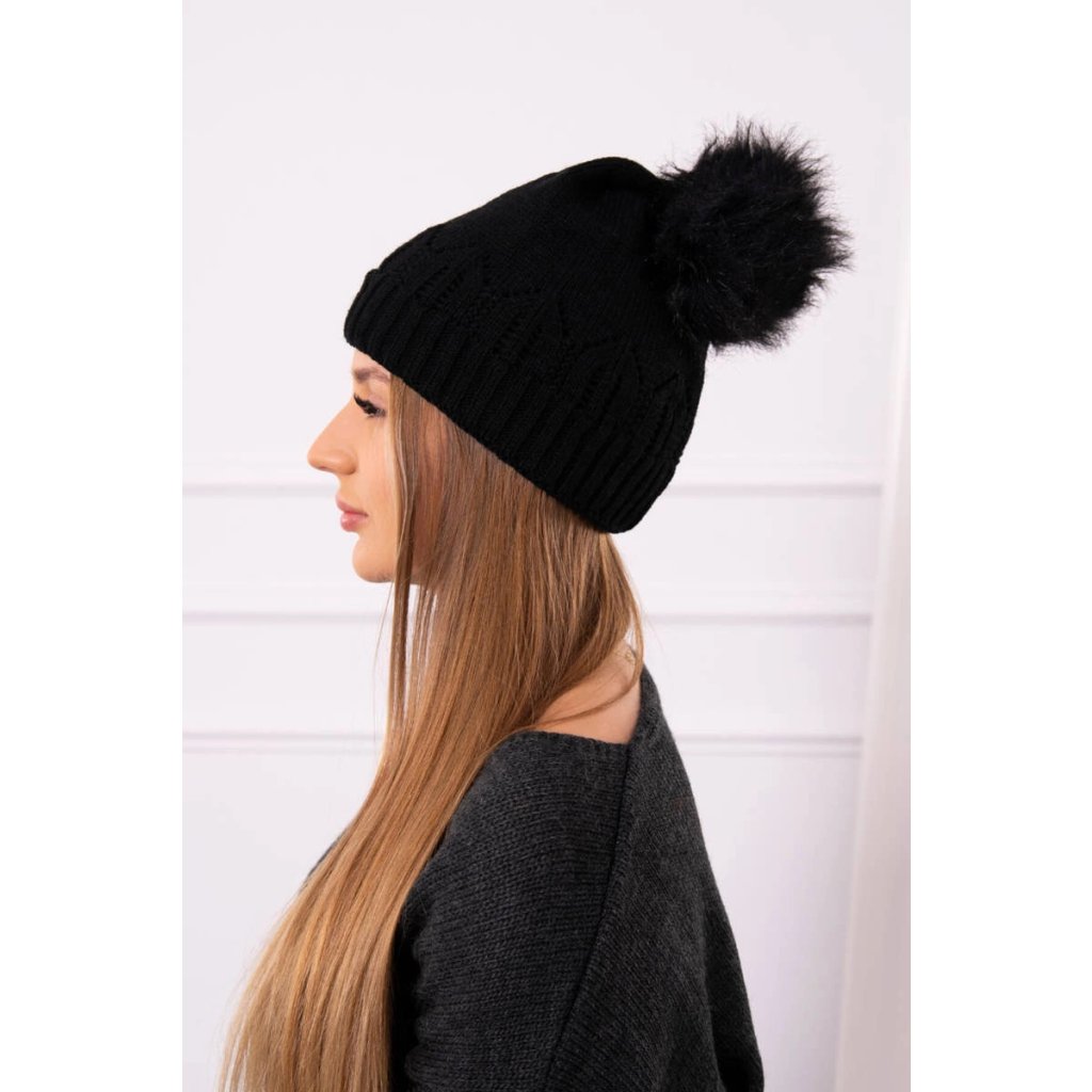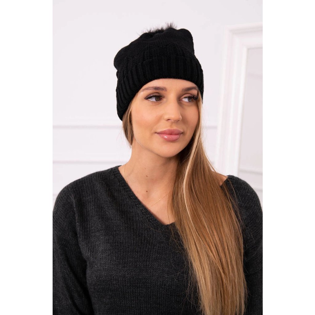 Dámska čiapka s brmbolcom Judyta K347 čierna