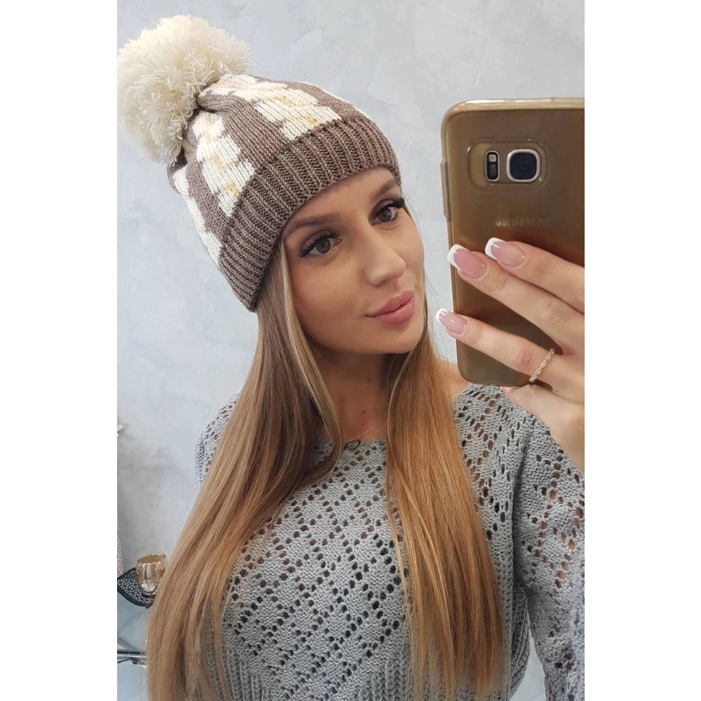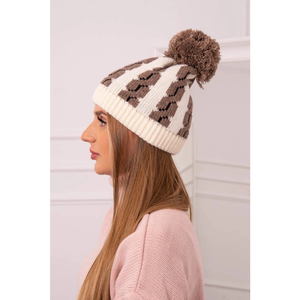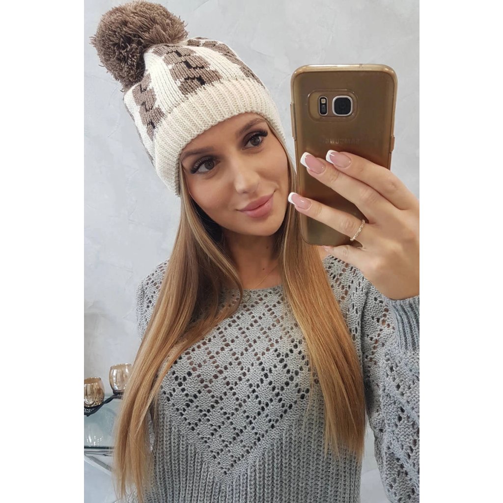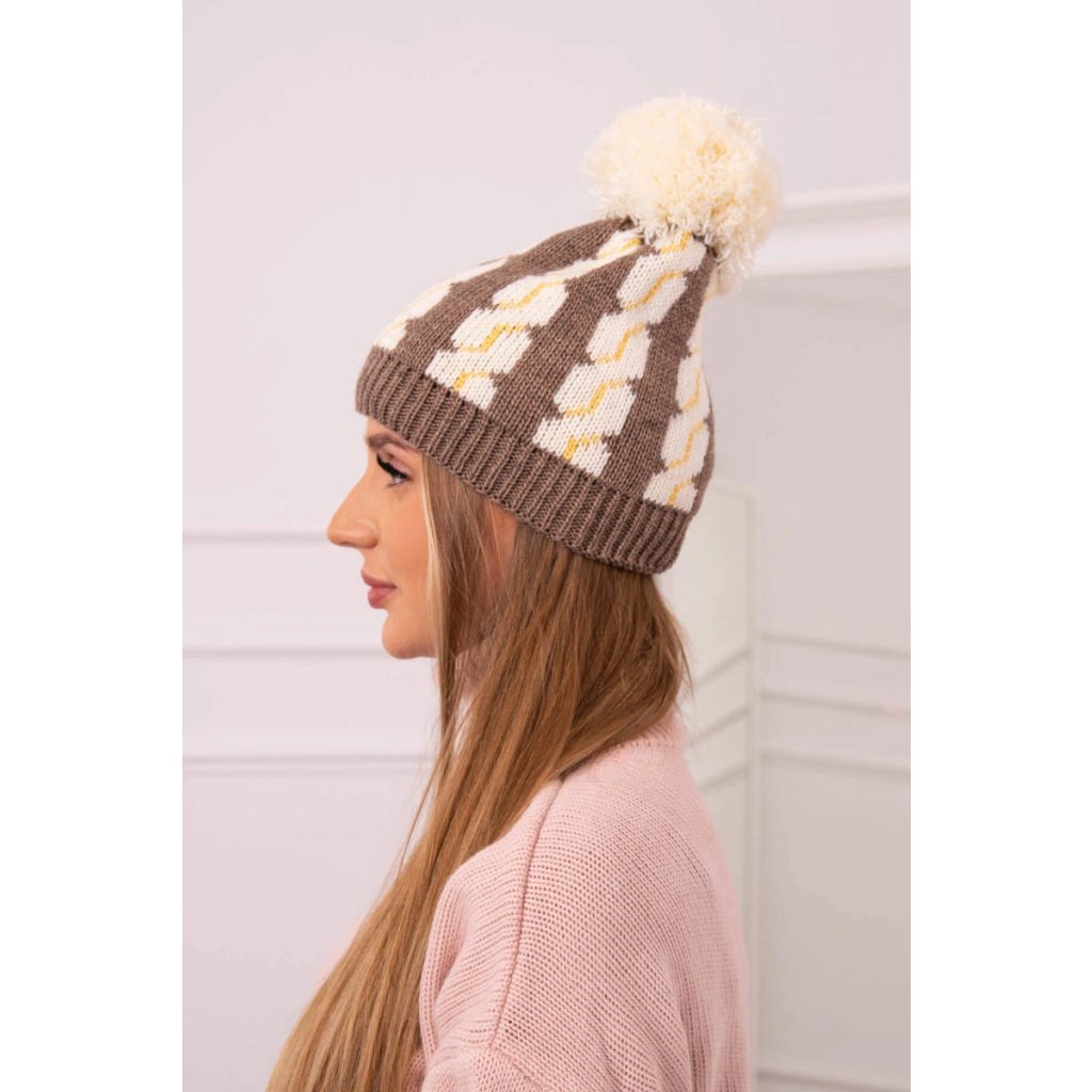 Dámska čiapka s brmbolcom Rozalia K323 béžová+čierna