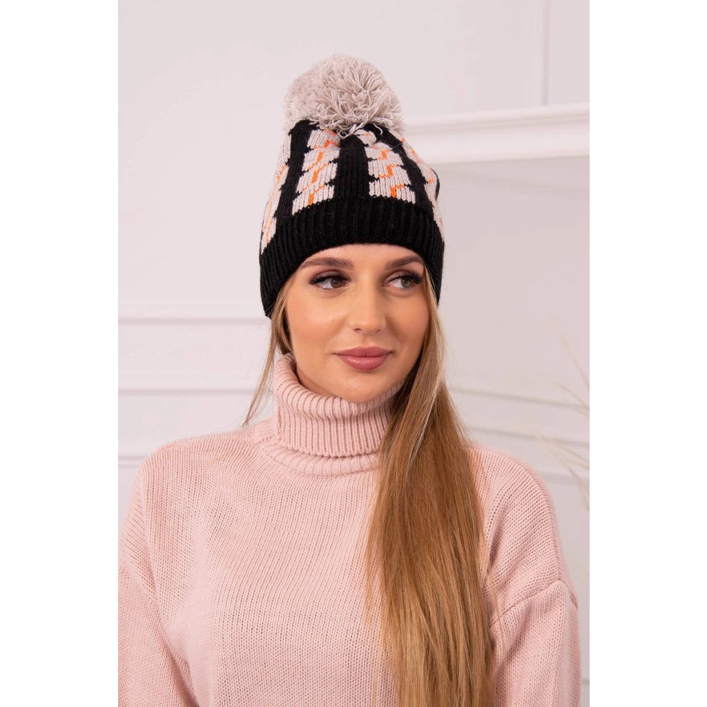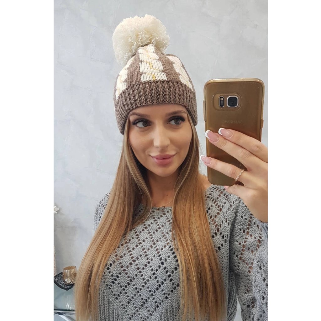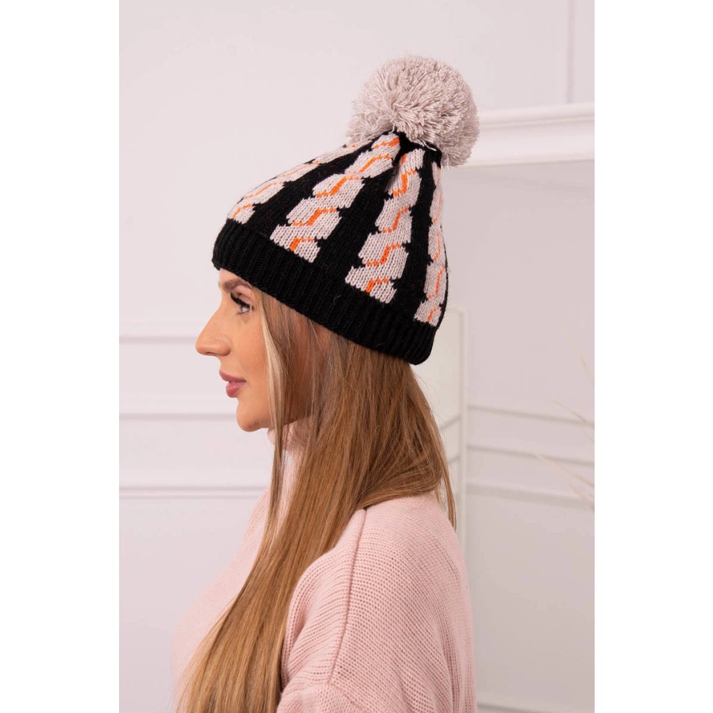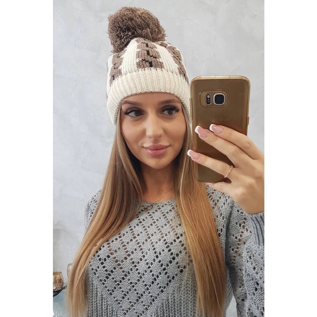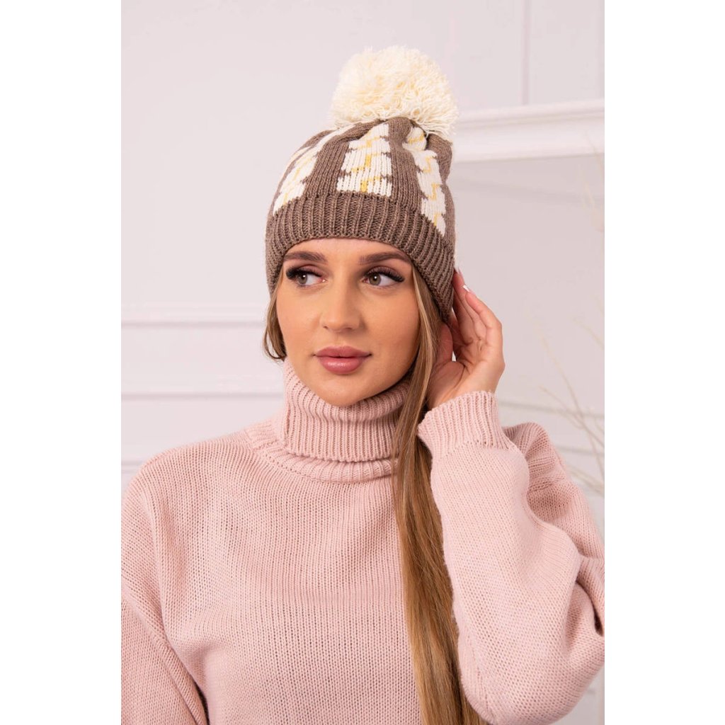 Dámska čiapka s brmbolcom Rozalia K323 béžová+čierna