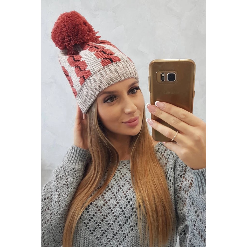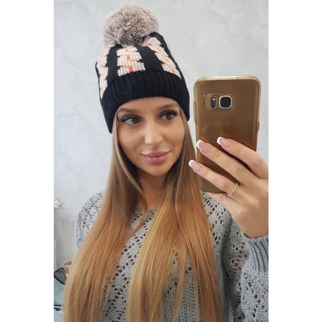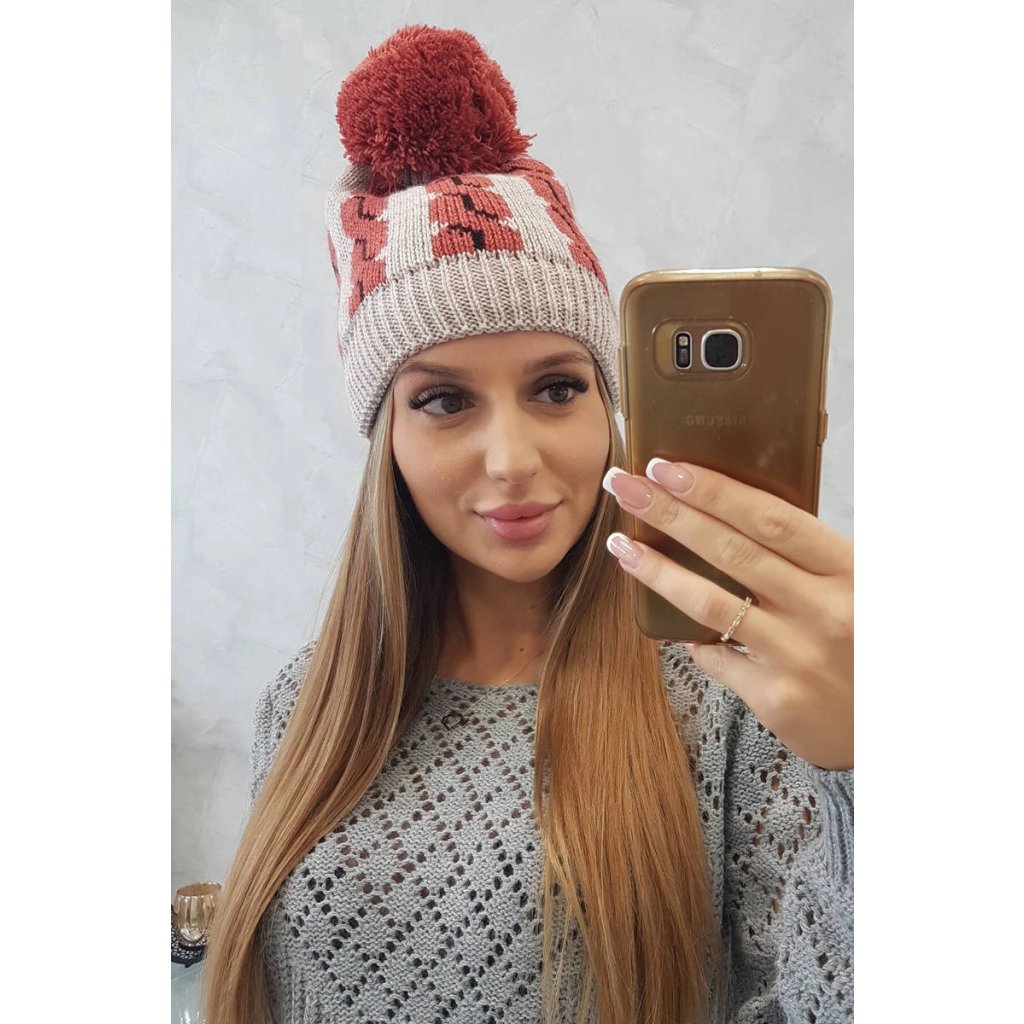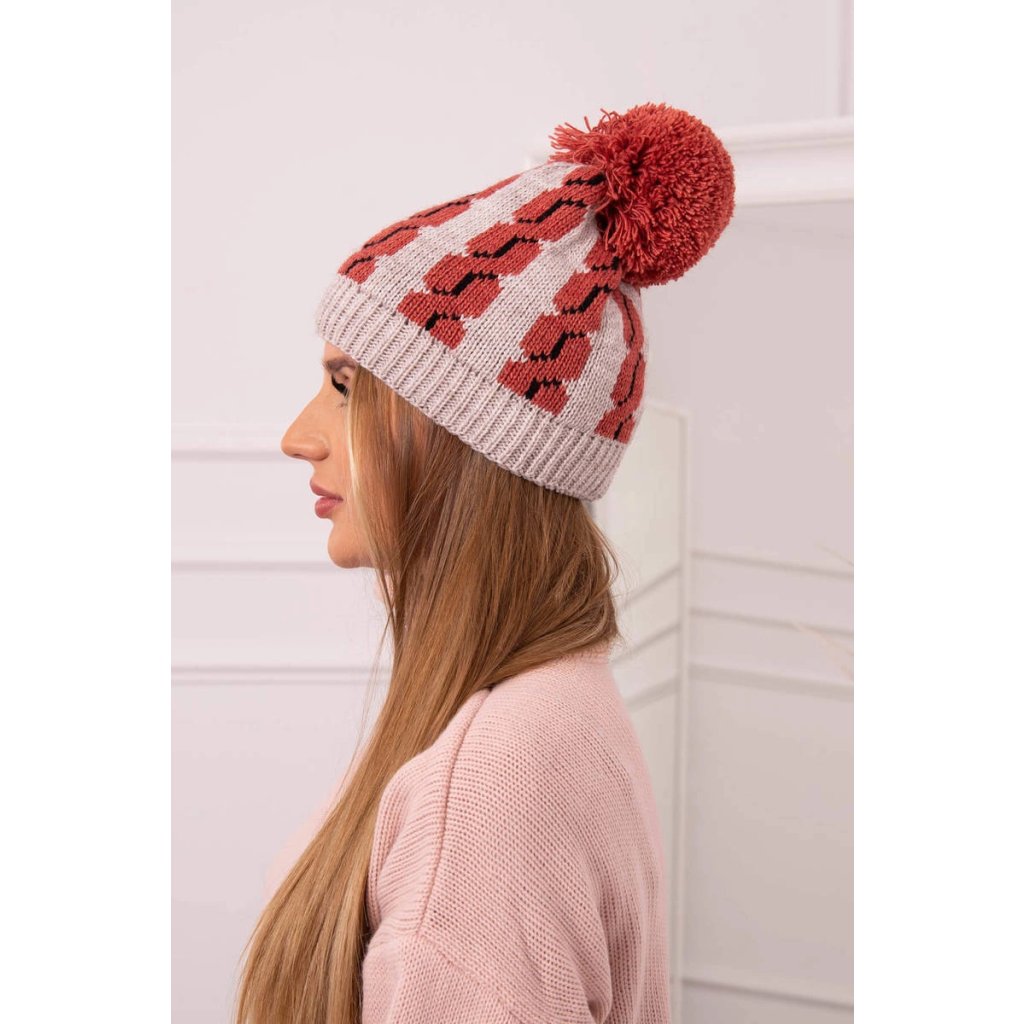 Dámska čiapka s brmbolcom Rozalia K323 béžová+čierna