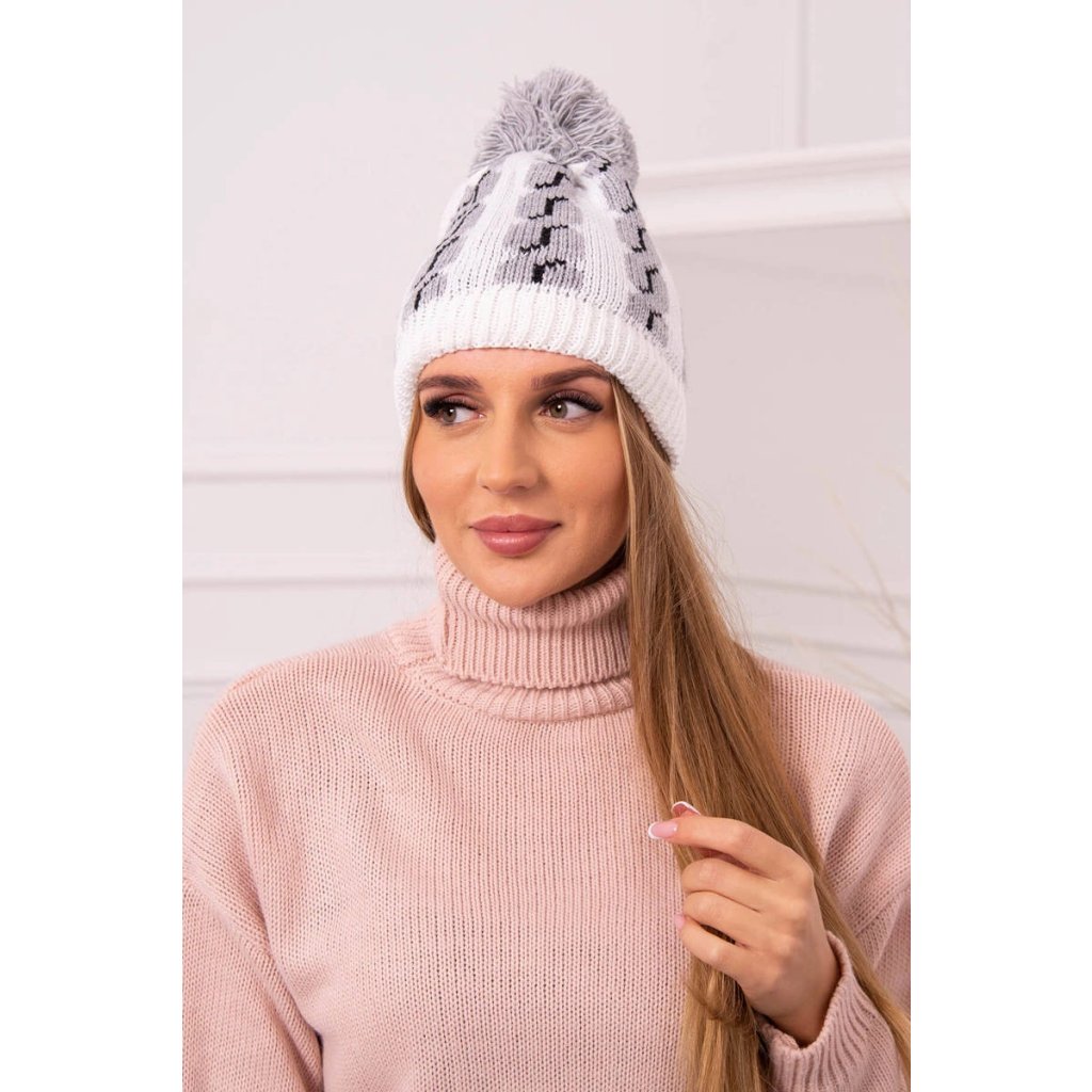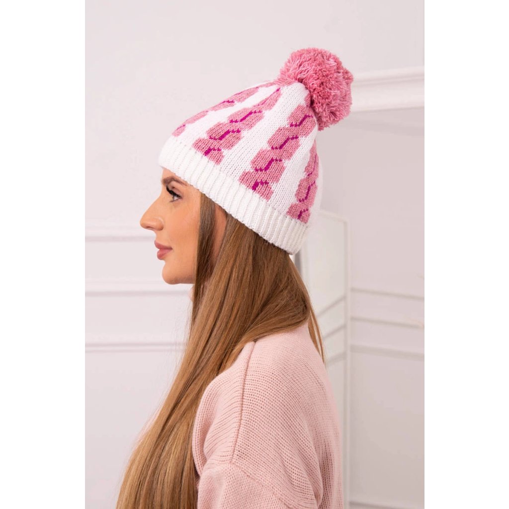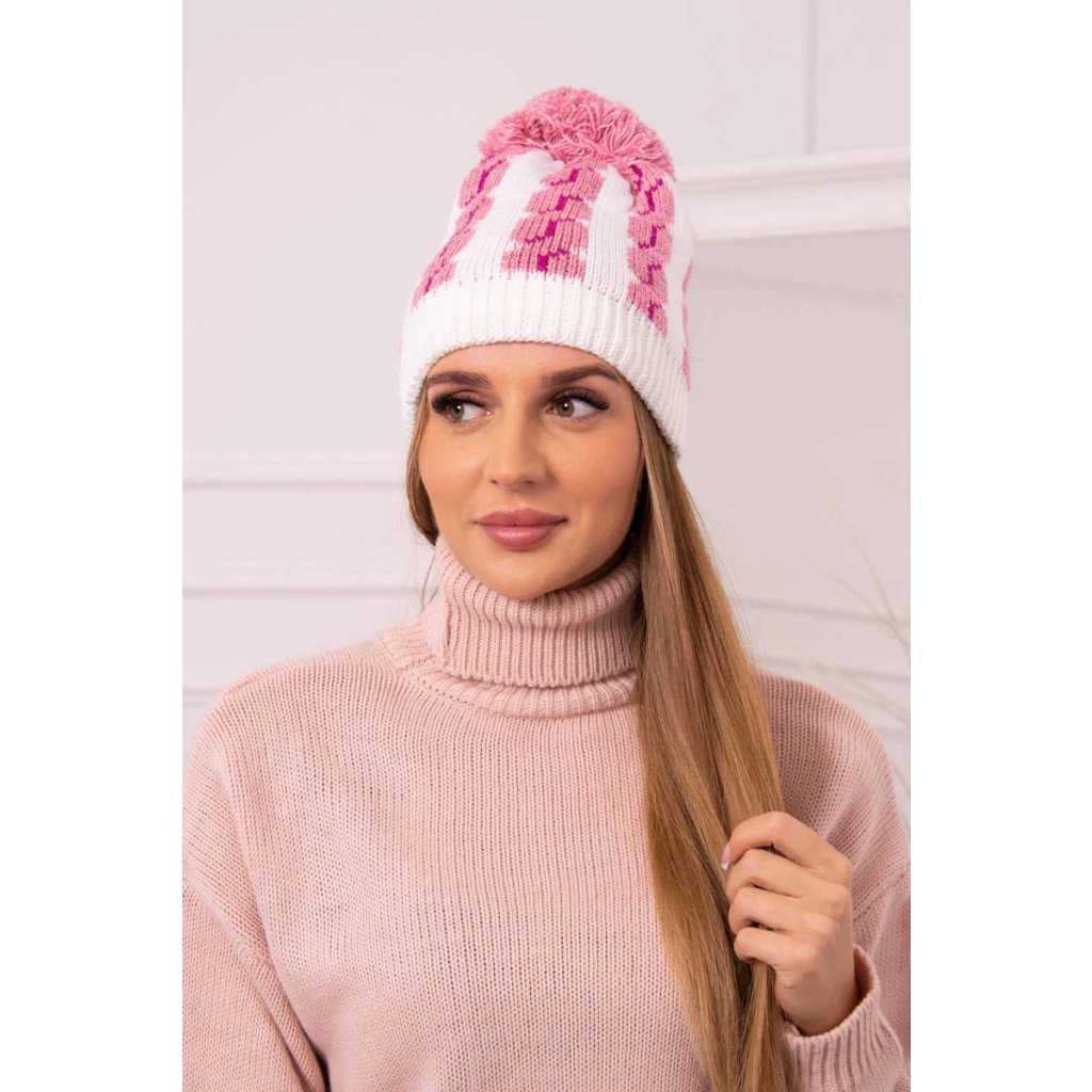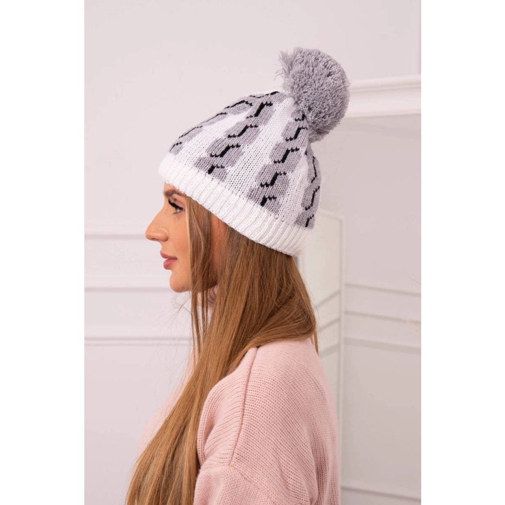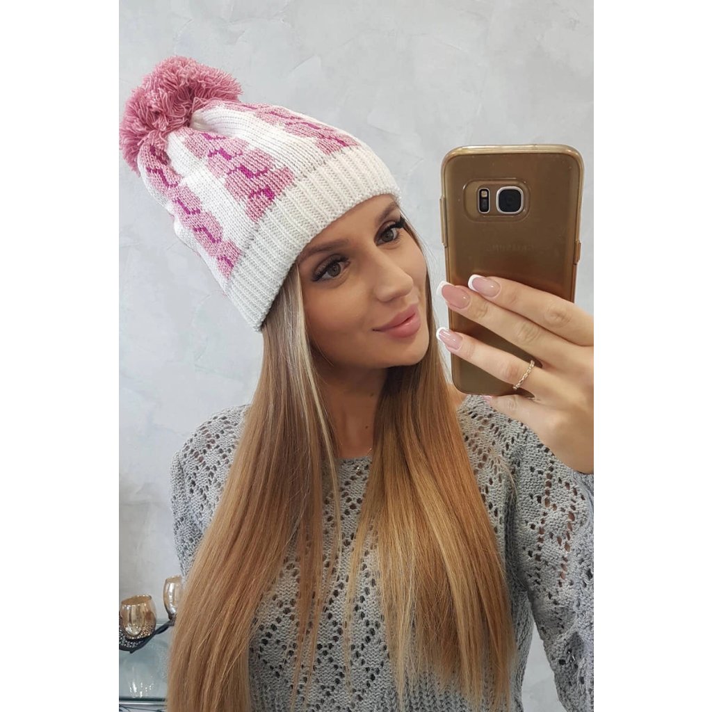 Dámska čiapka s brmbolcom Rozalia K323 béžová+čierna