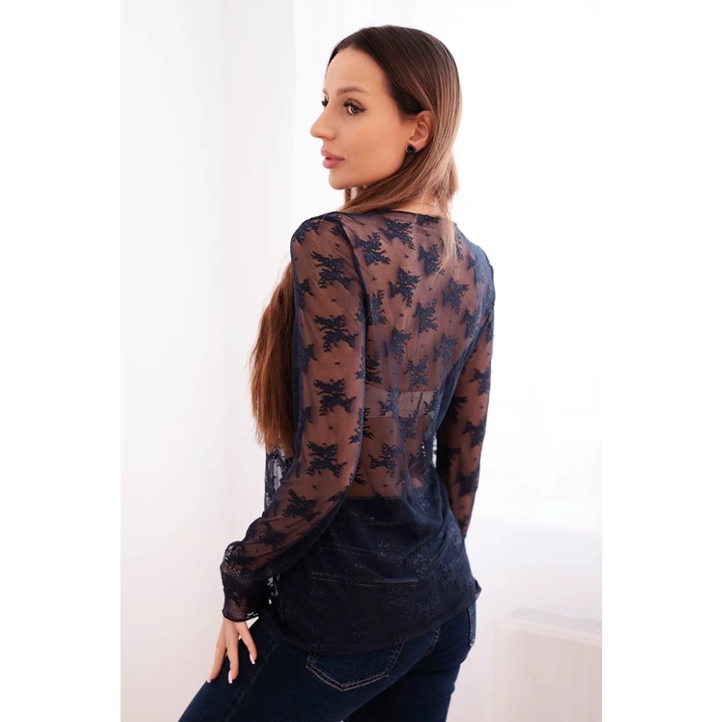 Dámska čipkovaná blúzka s dlhým rukávom tmavomodrá