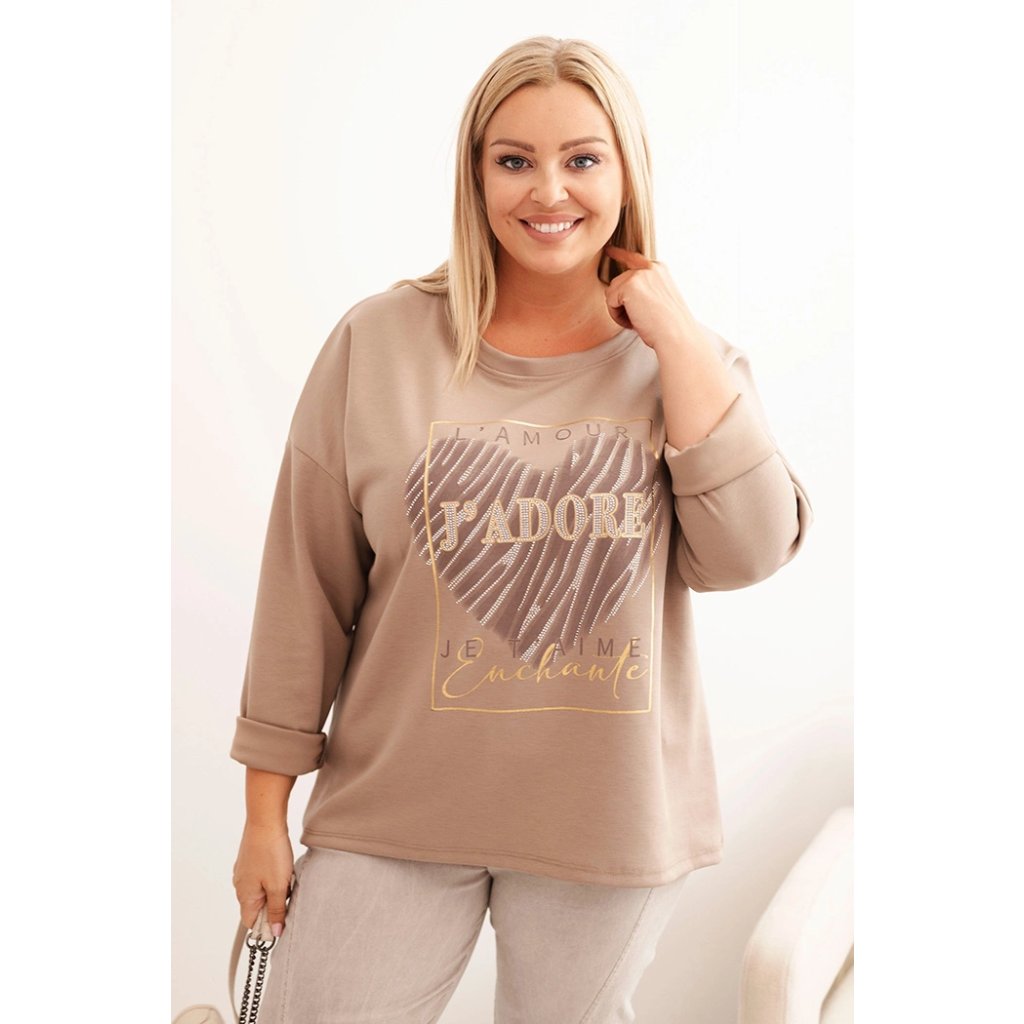 Dámska mikina Plus Size maslová s 3D potlačou bavlnená