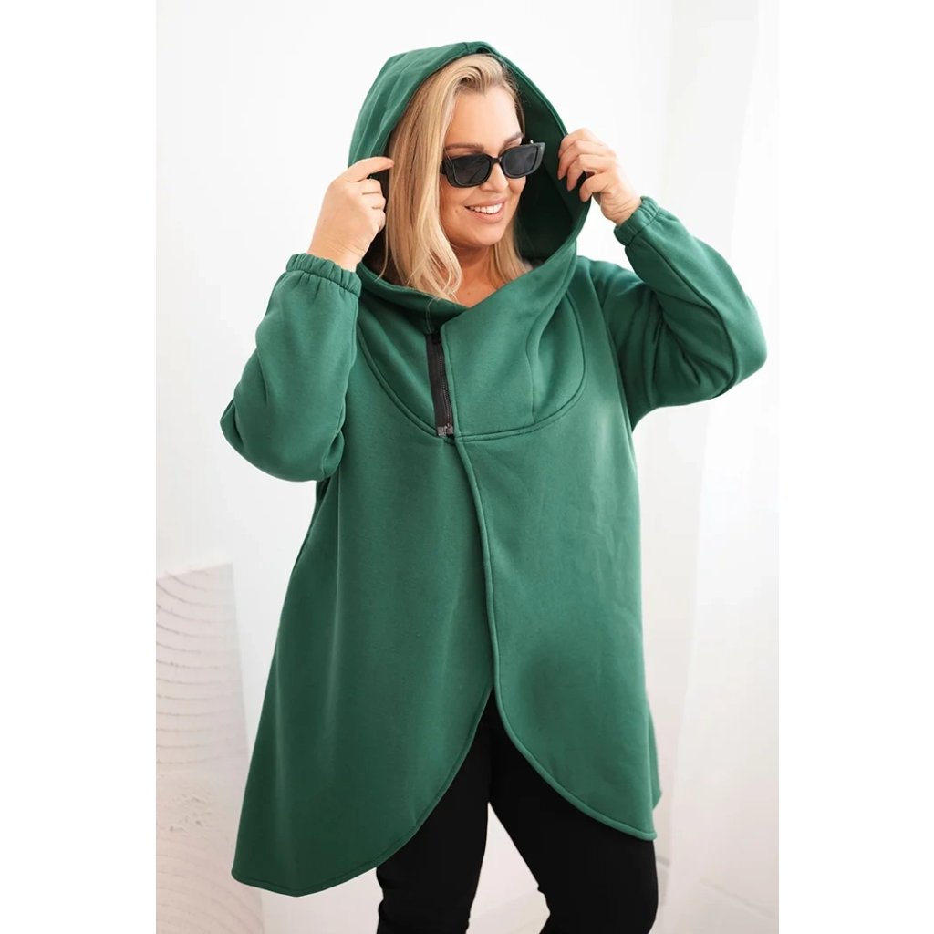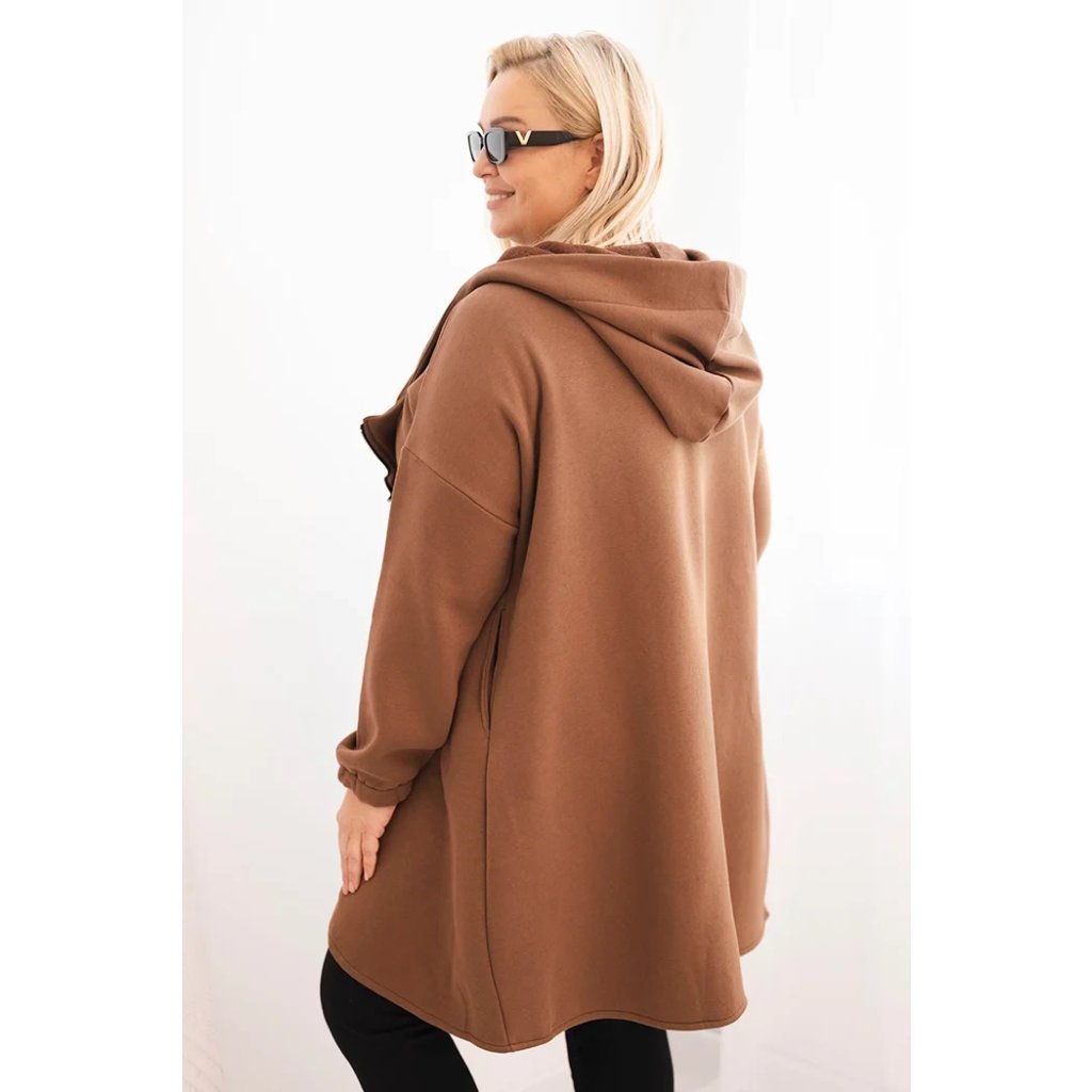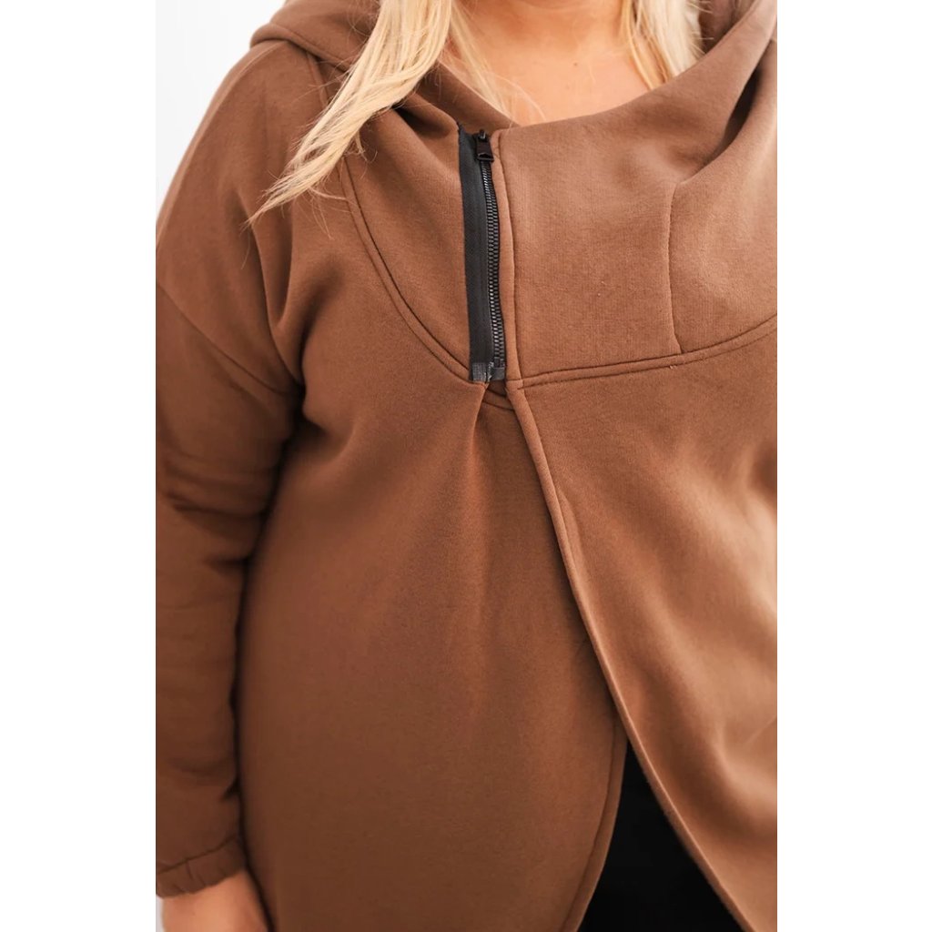 Dámska mikina Plus Size s kapucňou a asymetrickým zipsom hnedá