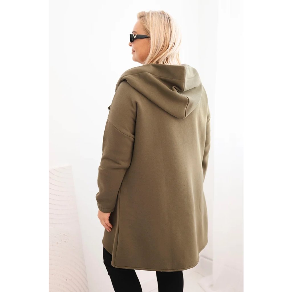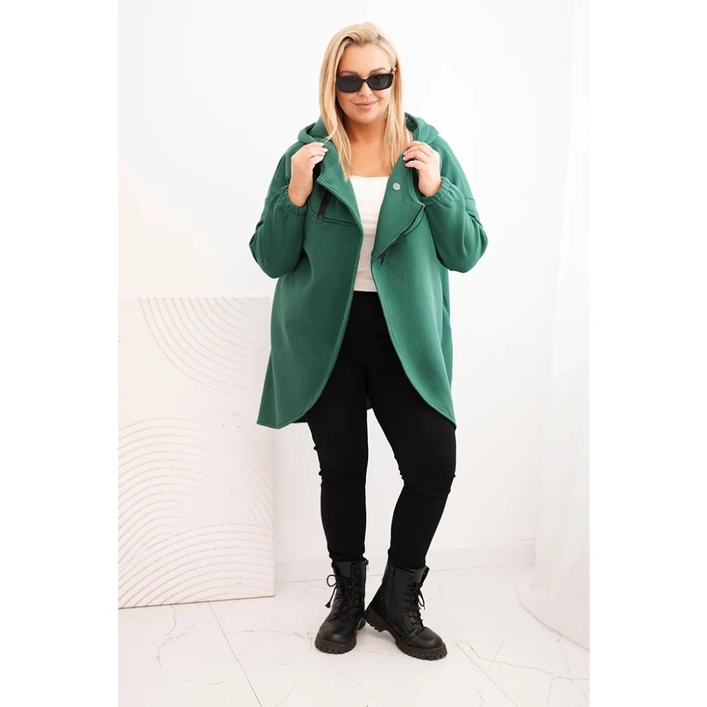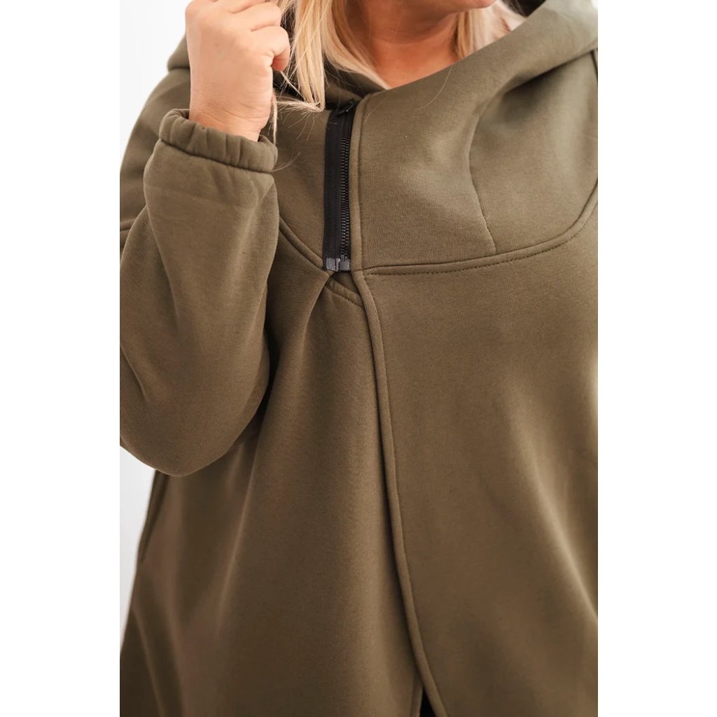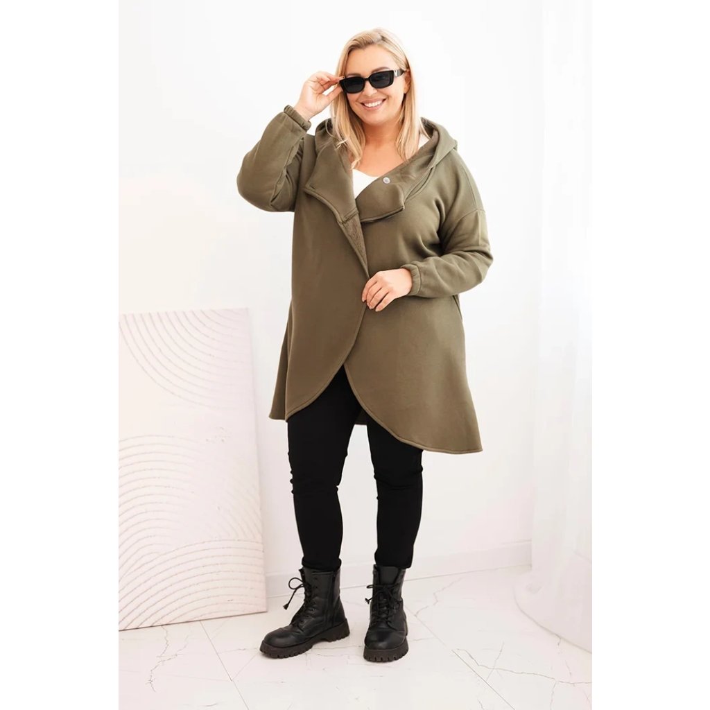 Dámska mikina Plus Size s kapucňou a asymetrickým zipsom hnedá