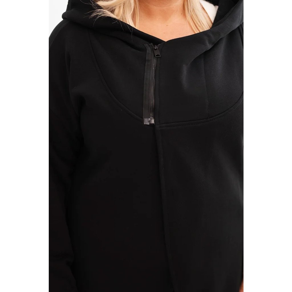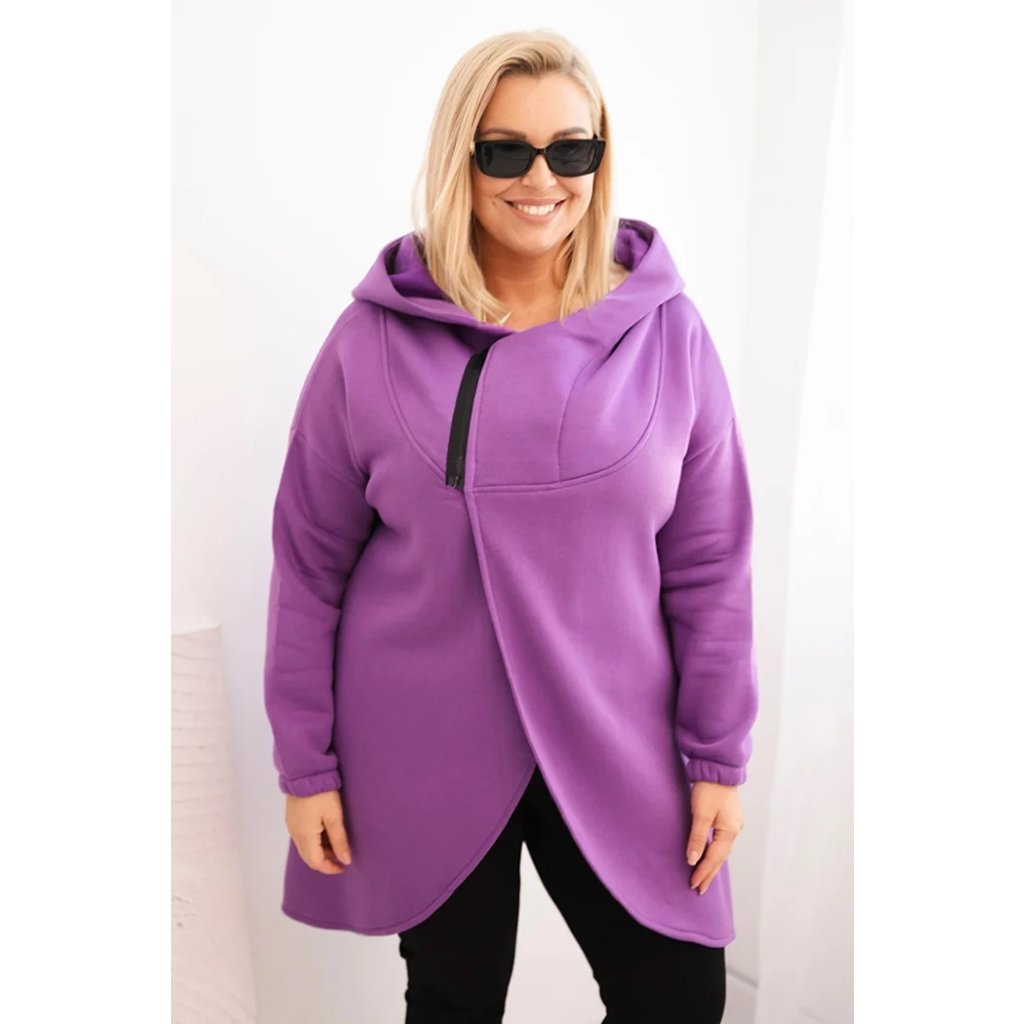 Tu je dámska mikina, ktorá spája komfort každodenného nosenia s nevšedným dizajnom! Tento Plus Size model s kapucňou a efektným asymetrickým zipsom je návrhom pre ženy, ktoré obľubujú módu s charakterom. Vďaka voľnému strihu sa skvele prispôsobí postave, maskuje nedokonalosti a zaisťuje voľnosť pohybu. Pohodlné rukávy zakončené jemnou gumou a dĺžka siaha za boky, takže mikina je ideálna do chladnejších dní – na každodenné nosenie, na prechádzku či do práce.
