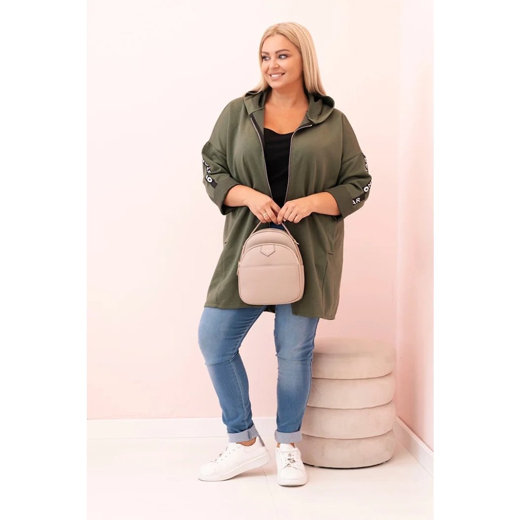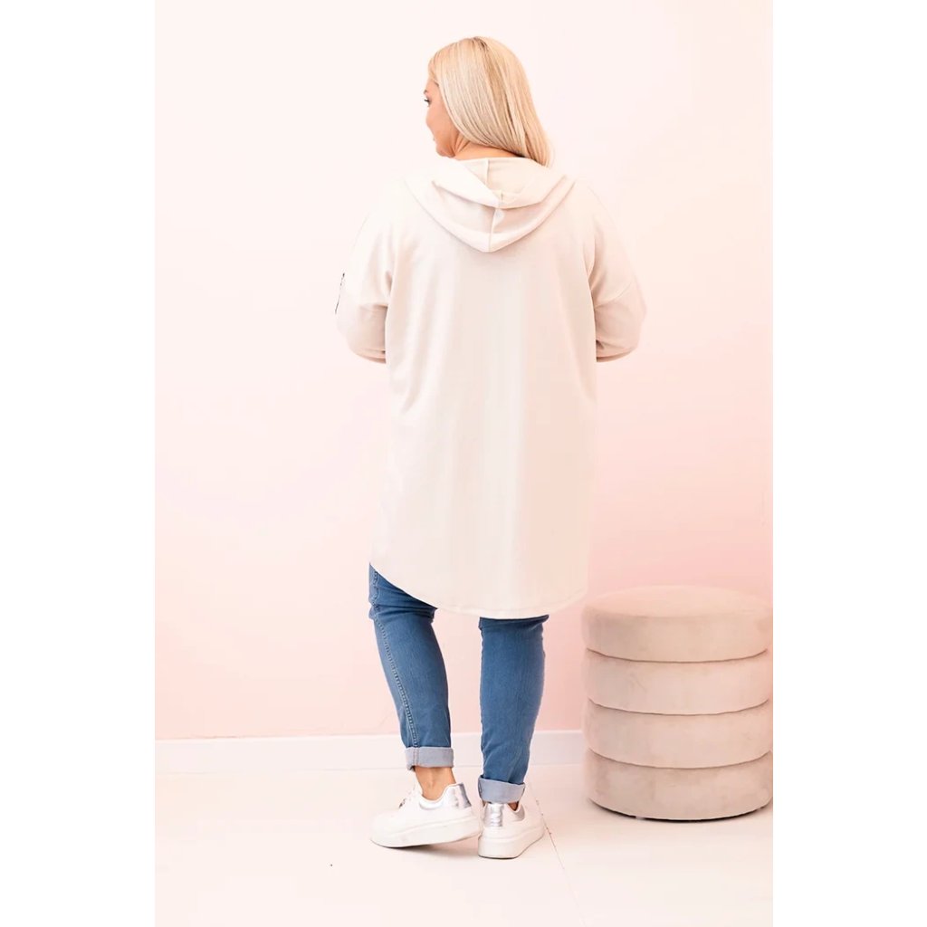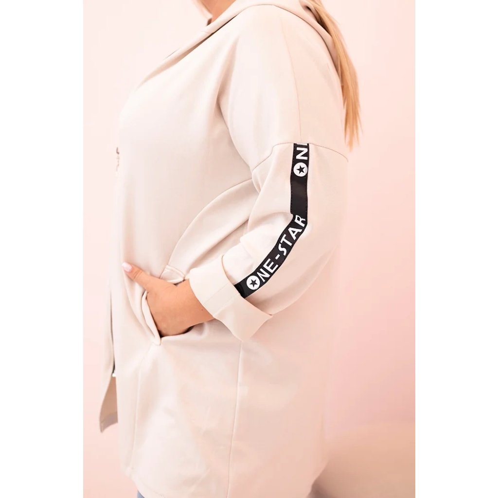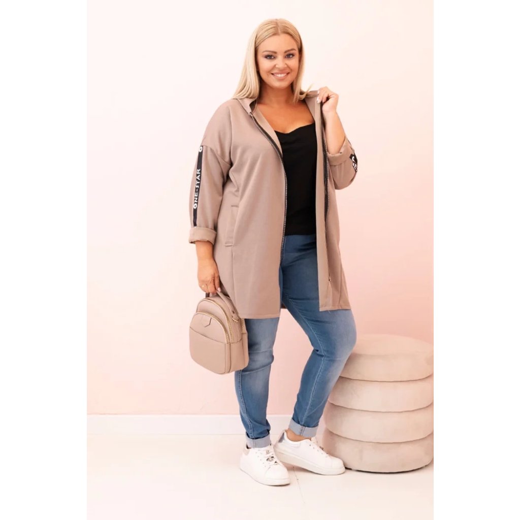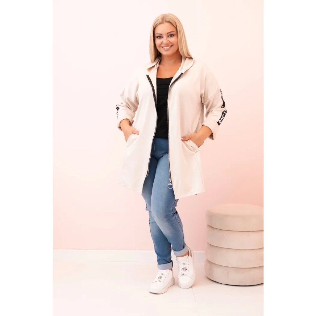 Dámska mikina Plus Size s viskózou na zips s kapucňou béžová