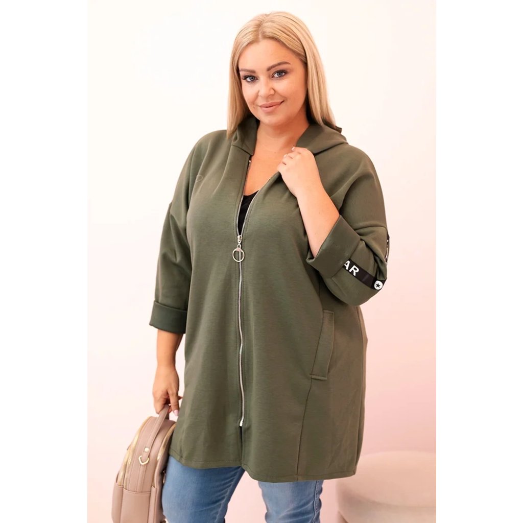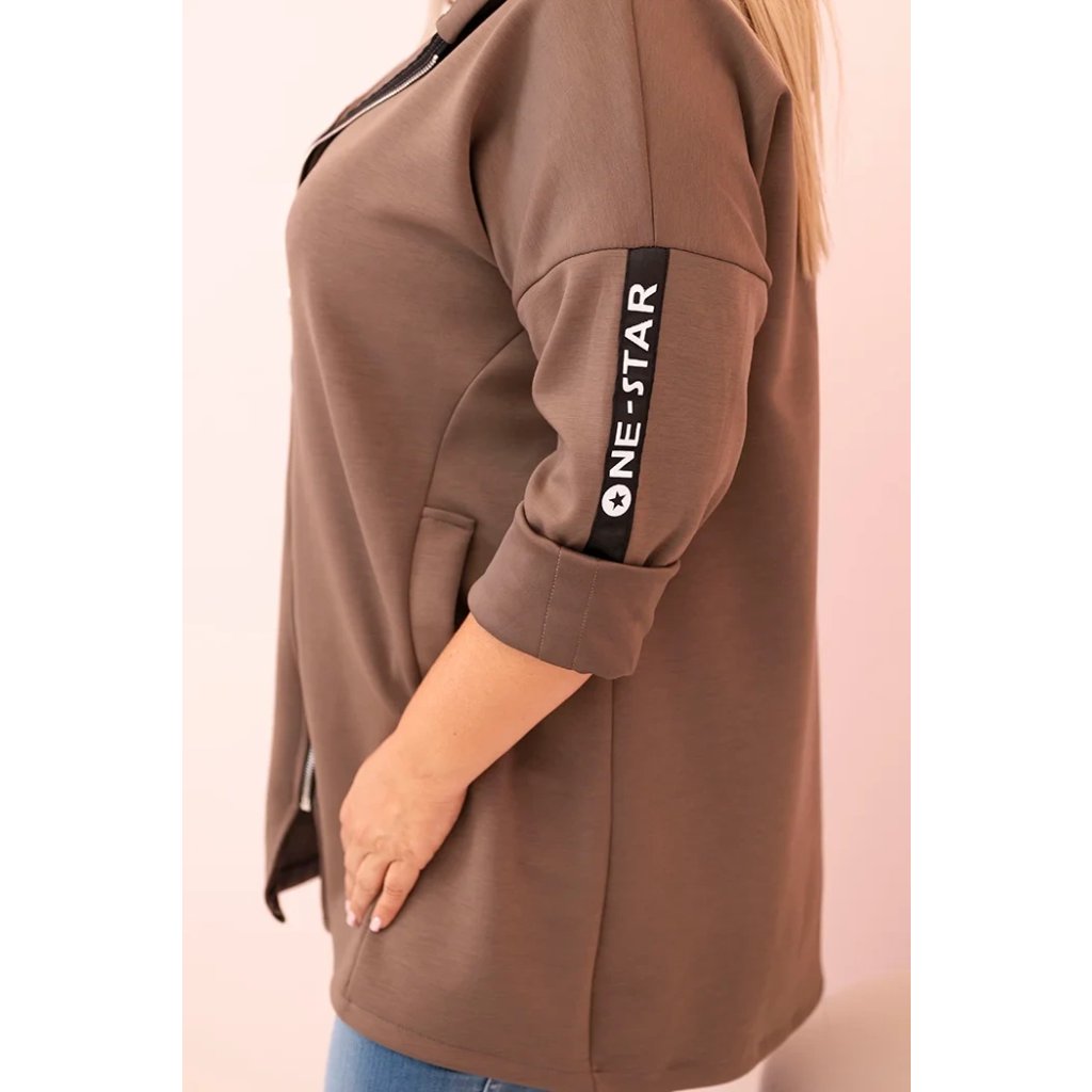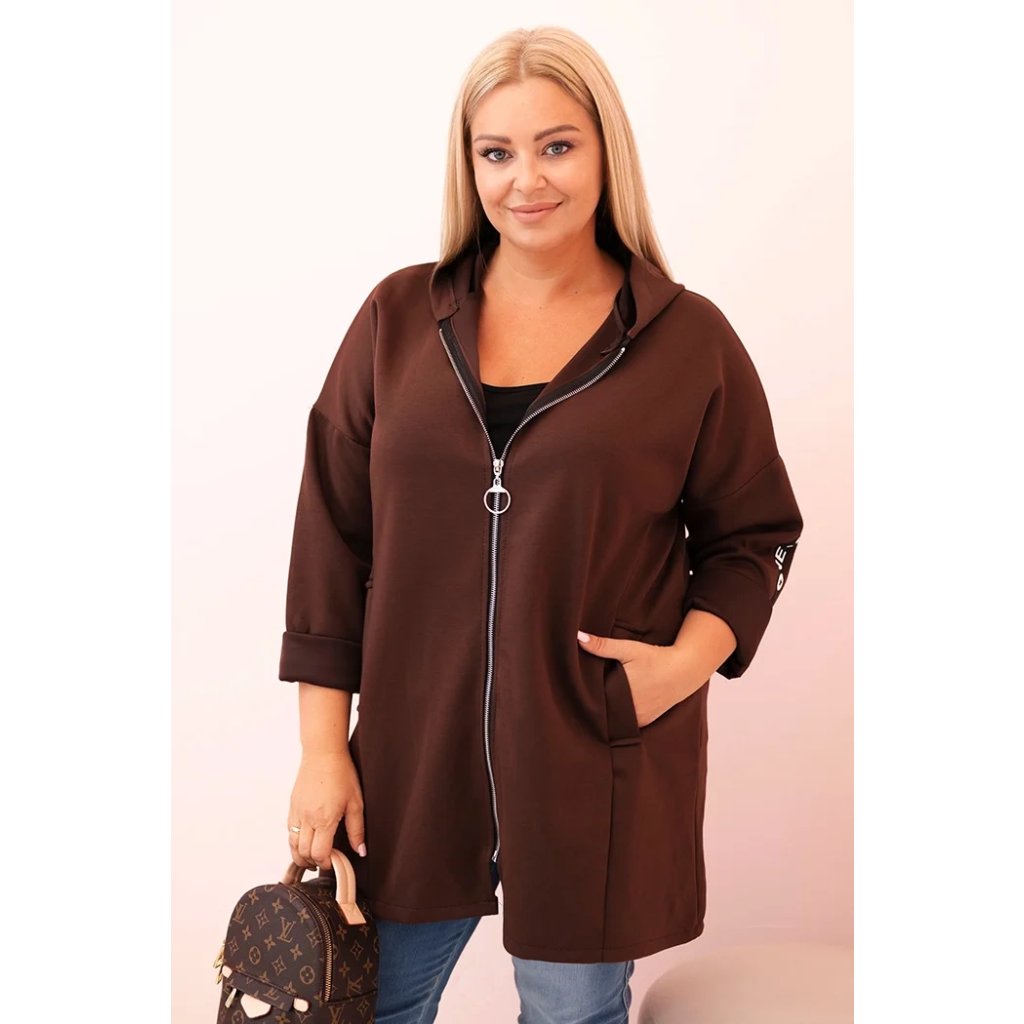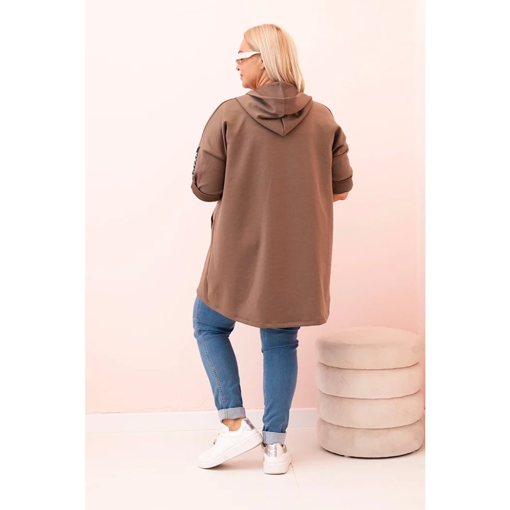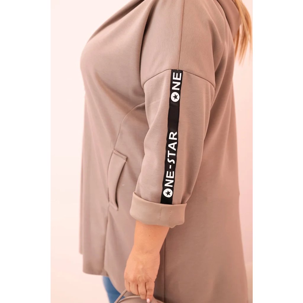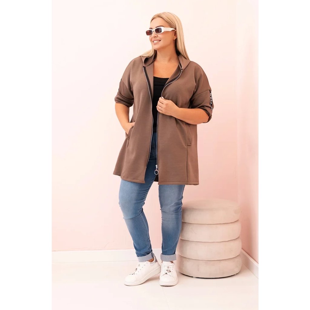 Dámska mikina Plus Size s viskózou na zips s kapucňou béžová