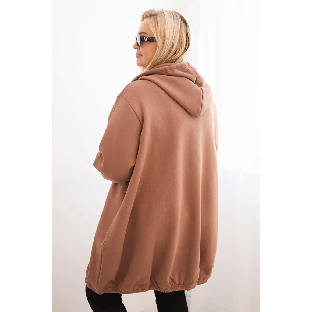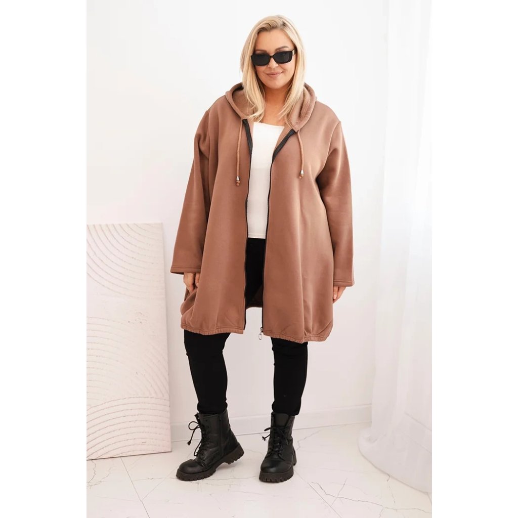 Dámska mikina Plus Size zateplená s kapucňou a zipsom hnedá