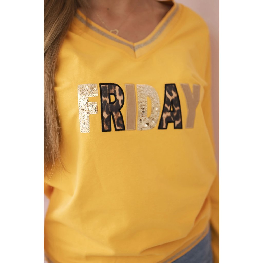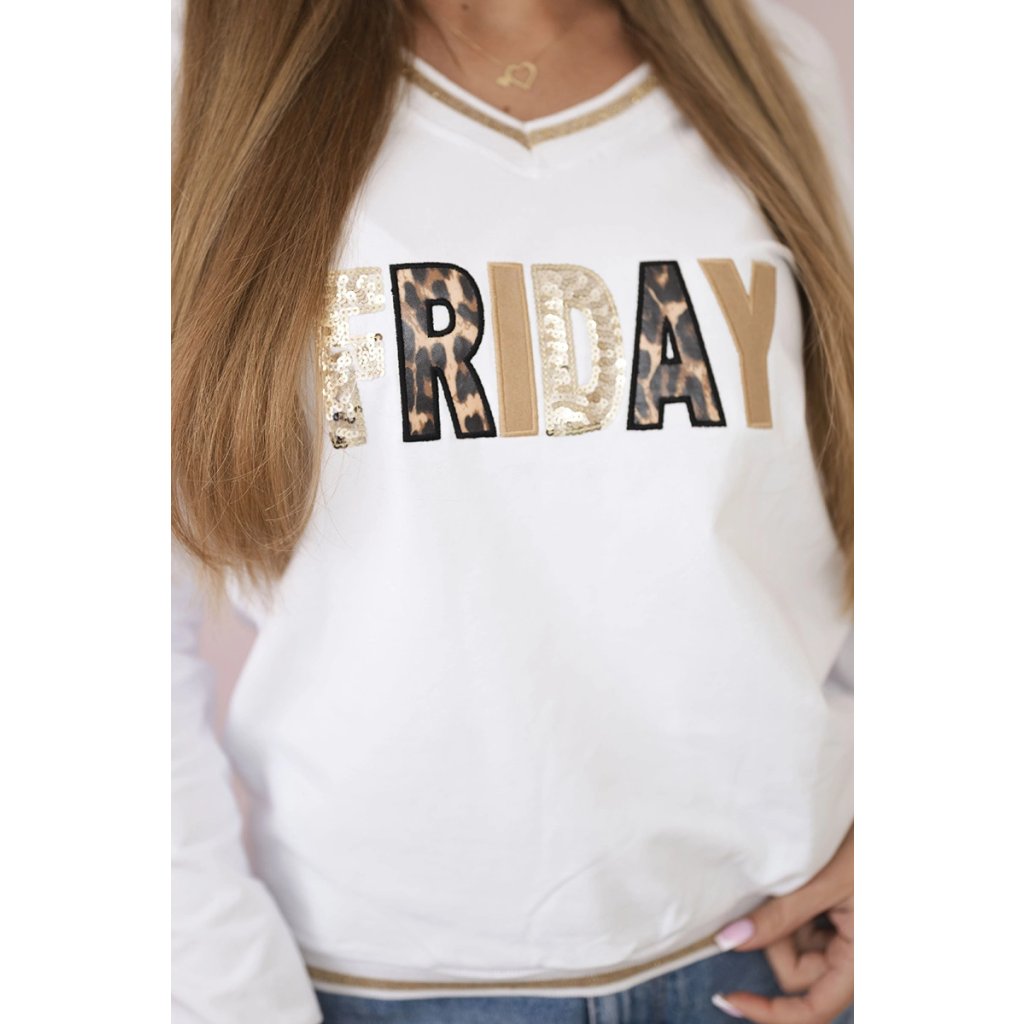 - Nápis „FRIDAY“ ozdobený flitrami a leopardím motívom